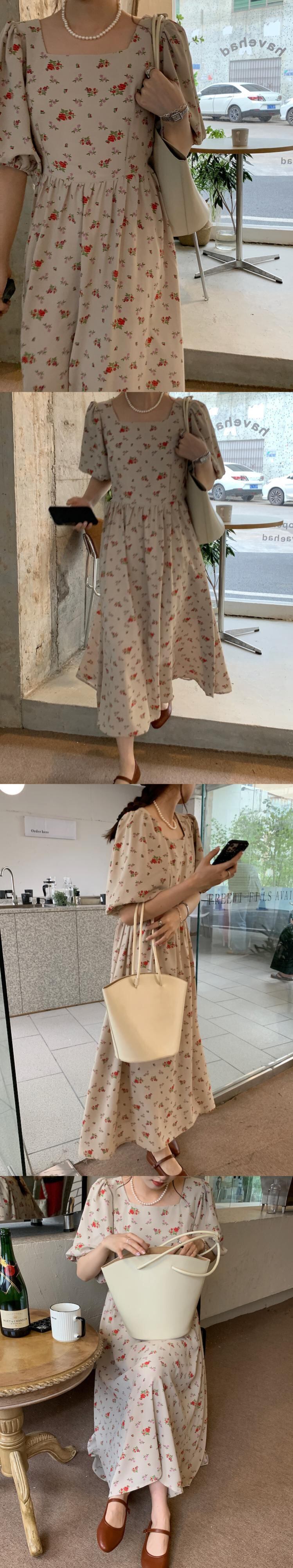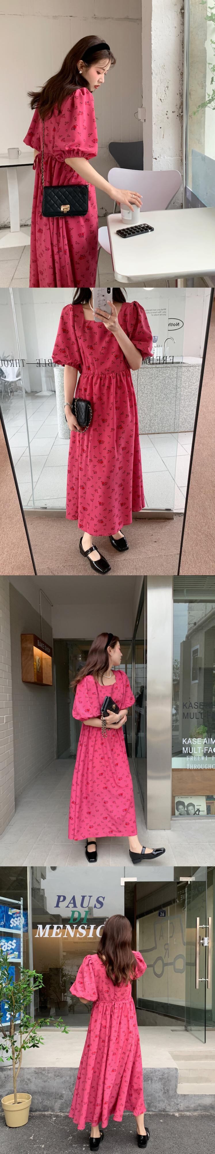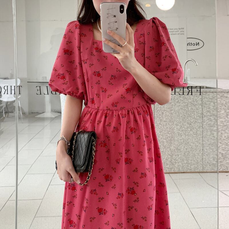 サマーカラーウェストスリムスリーブフローラルドレス 夏物 花柄 スクウェア 5/3 春夏 SS Neploe mi4687816186433