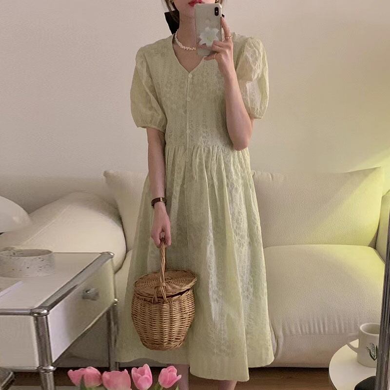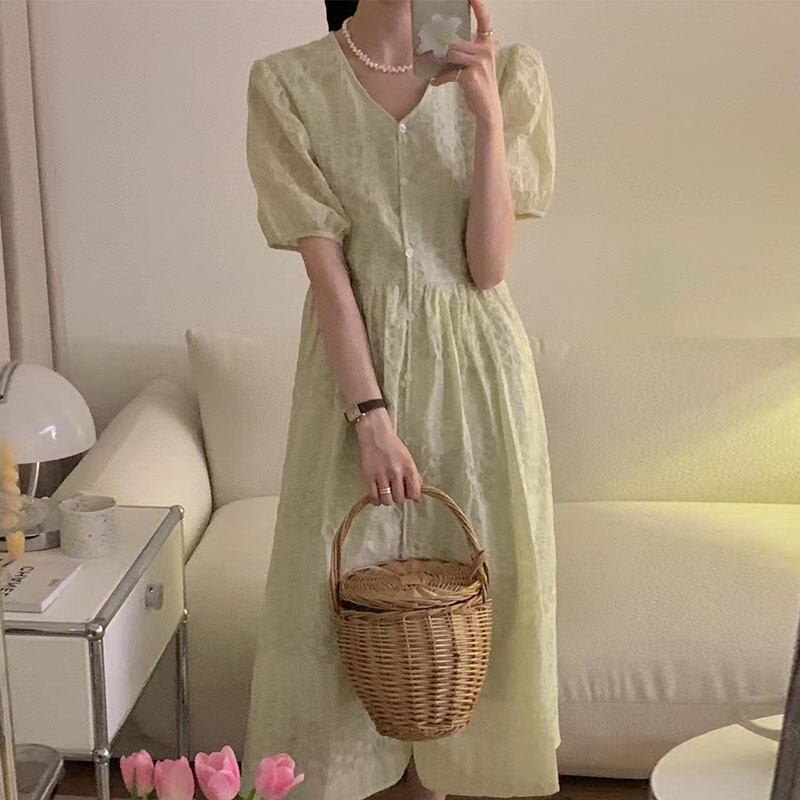 サマーVネックプリントウェストスリムスリーブドレス レディース レッド 夏物 5/3 春夏 SS Neploe mi4690055318957
