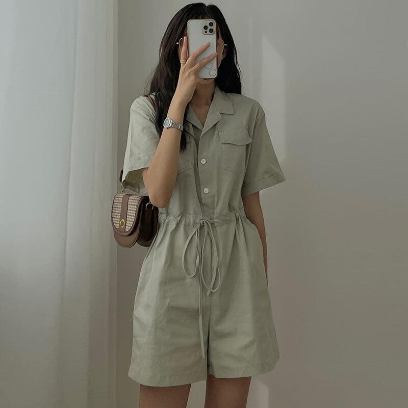 サマースタンダードカラーウェストジャンプスーツ オールインワン ショーツ レディース レトロ 夏物 ブルマー 5/3 春夏 SS Neploe mi4694997528450