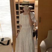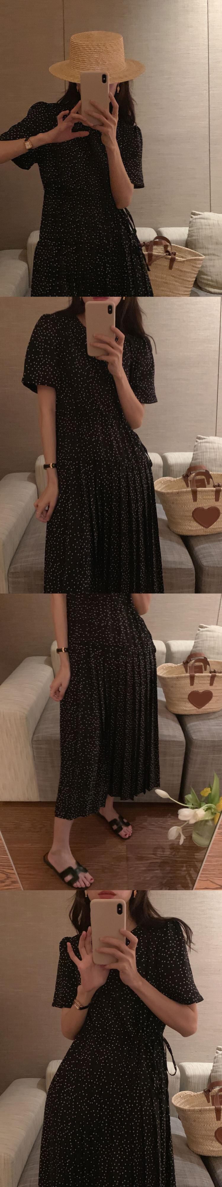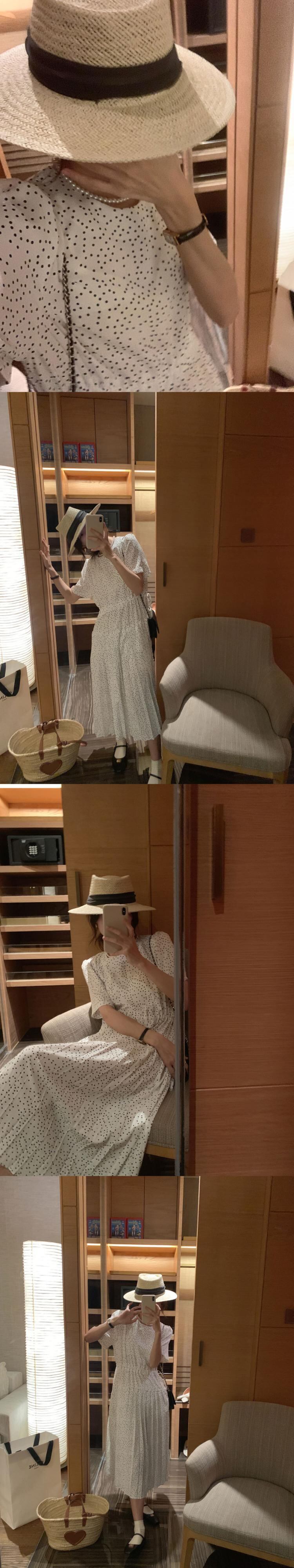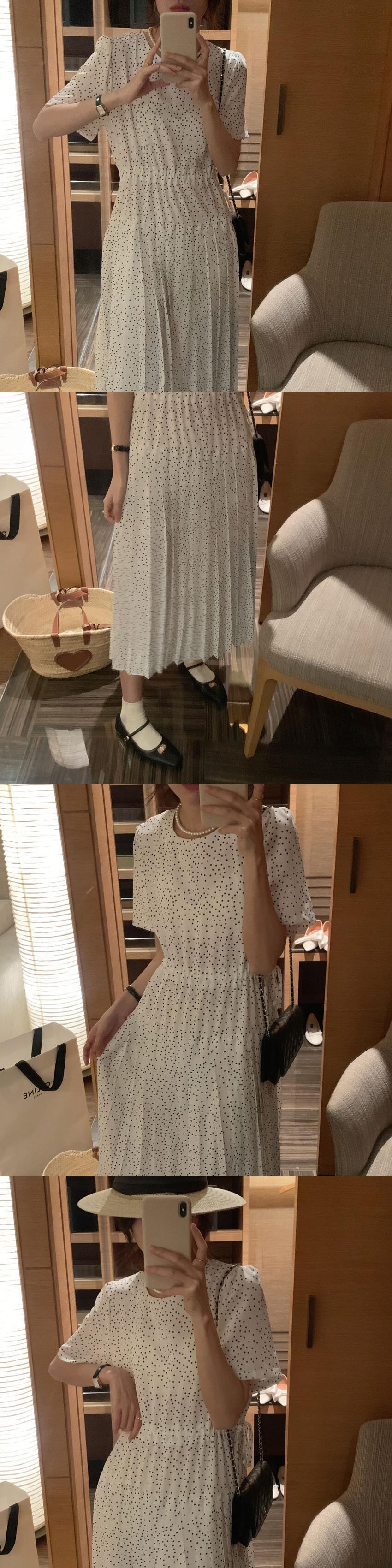 サマーラウンドネックギャザーウェストシフォン水玉ドレス 夏物 Oネック 5/3 春夏 SS Neploe mi4699255151976