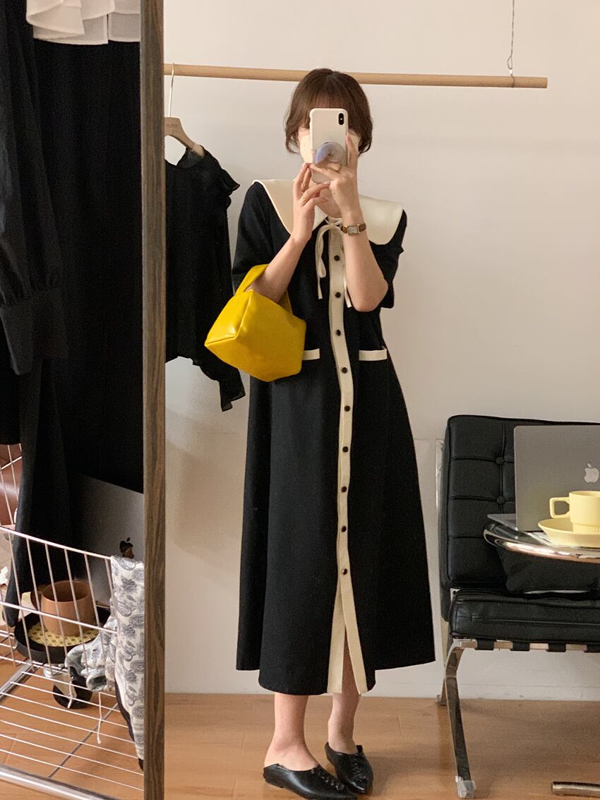 サマースタンダードカラーポケットロングドレス レディース レトロ 夏物 5/3 春夏 SS Neploe mi4610813135511