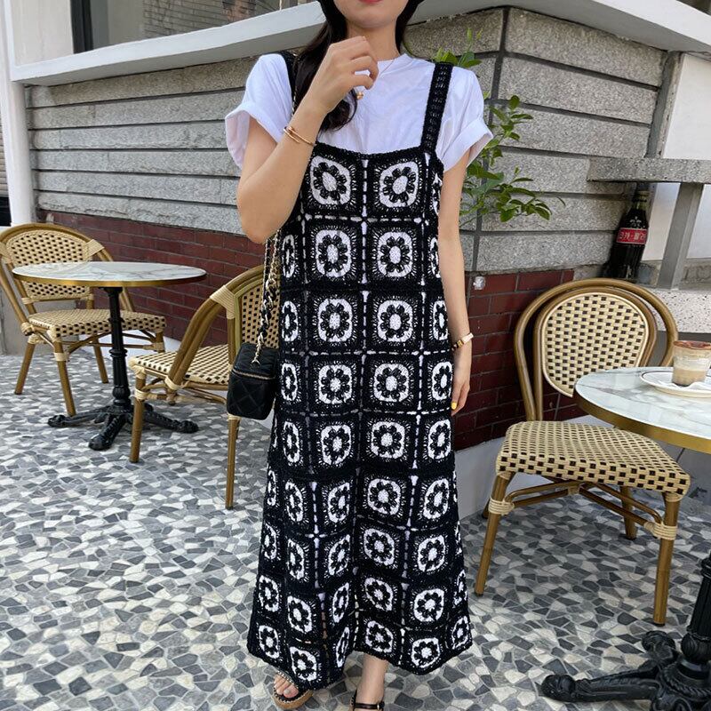 サマーラウンドネックTシャツ ドレス Flowerデザイン 刺繍スカート 夏物 Oネック フラワーデザイン 5/3 春夏 SS Neploe mi4668163049448