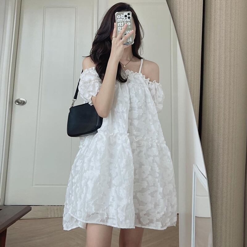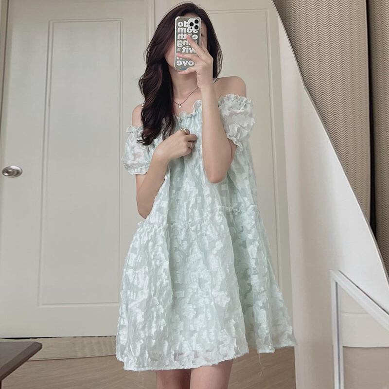 サマーカラールーズFlowerデザイン スリーブドレス 大人ガーリー スウィート キュート カジュアル エレガント 夏物 フラワーデザイン 5/3 春夏 SS Neploe mi4663119899074