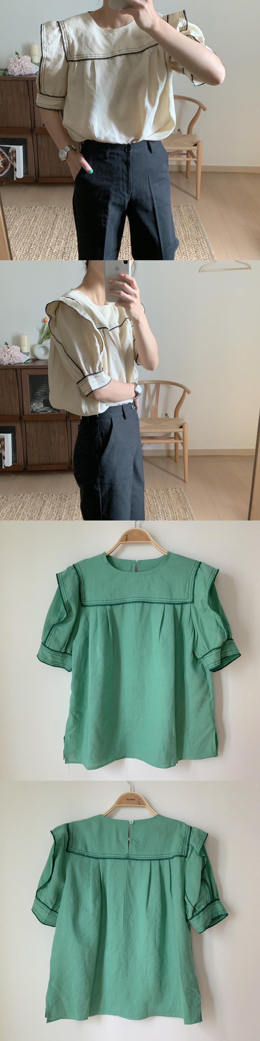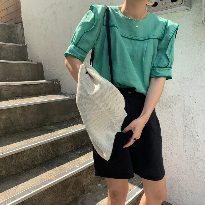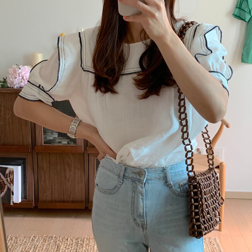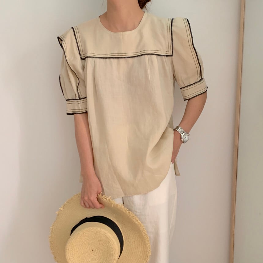 サマースタンダードラウンドネックラインルーズシャツ トップス レディース レトロ 夏物 Oネック ステッチ 5/3 春夏 SS Neploe mi4645161371186