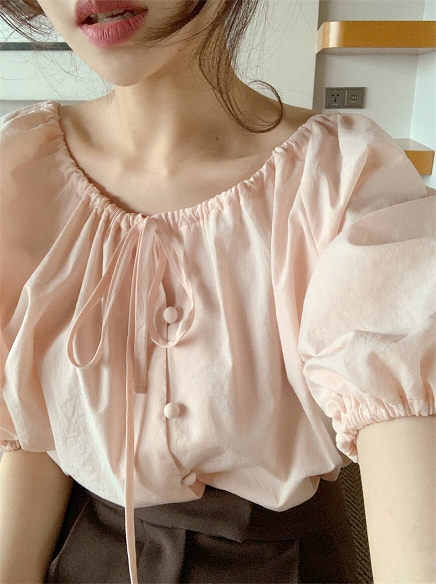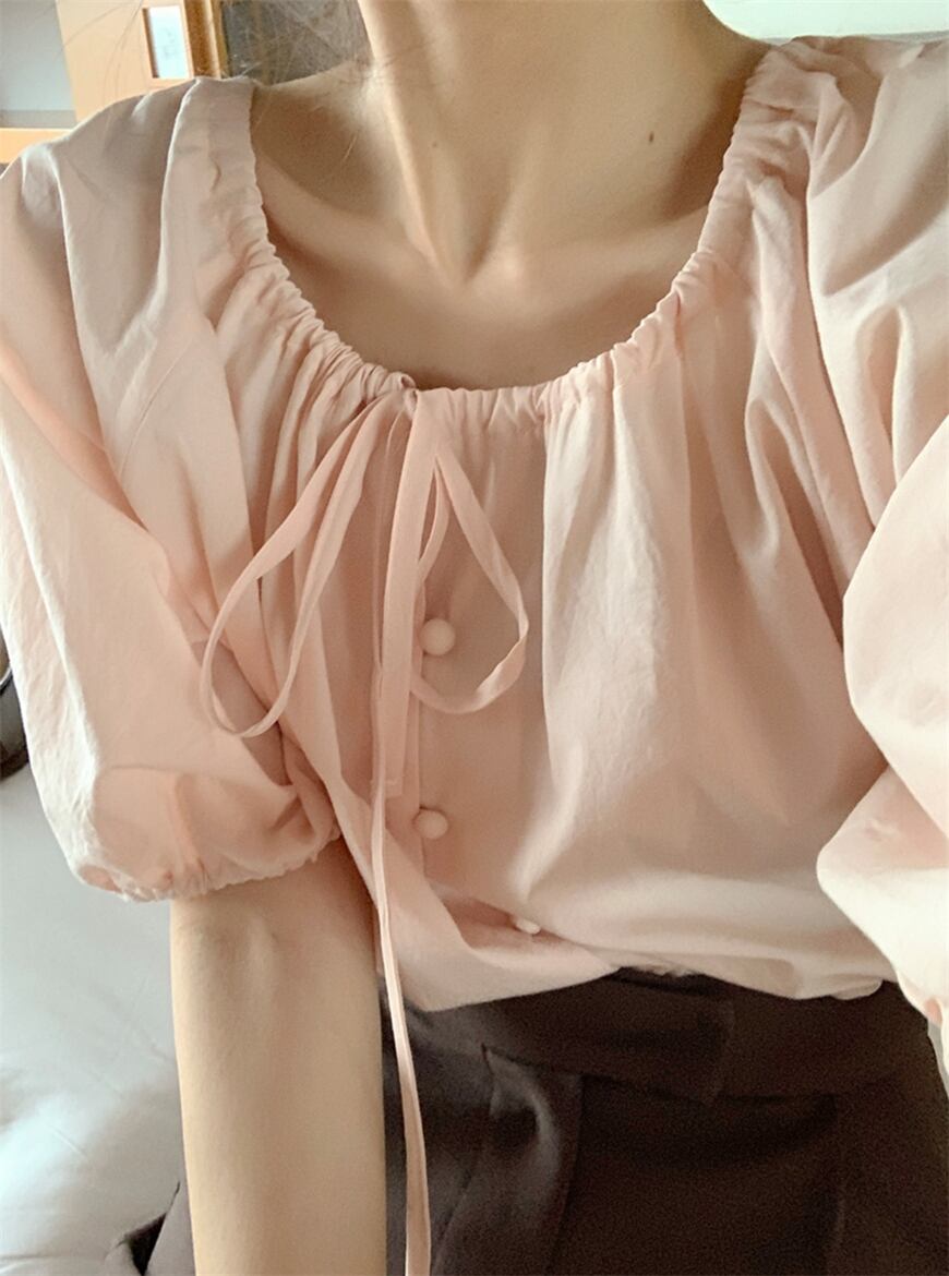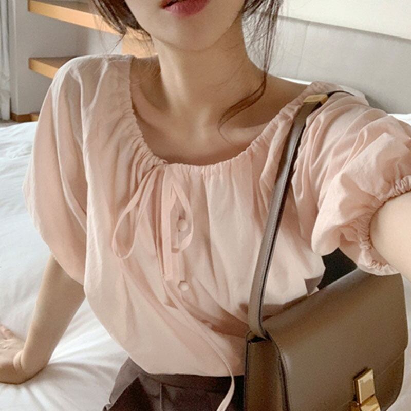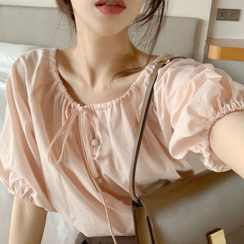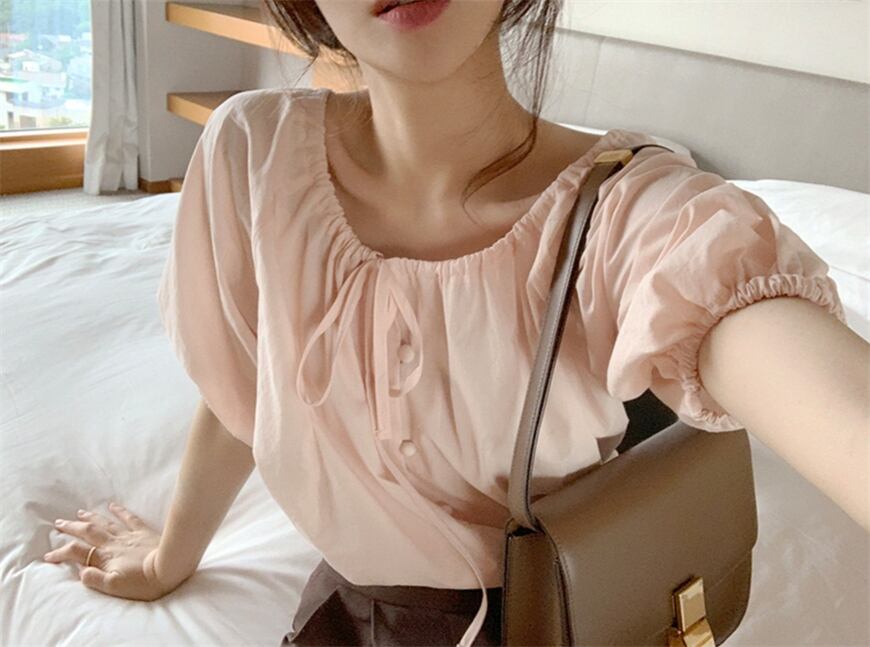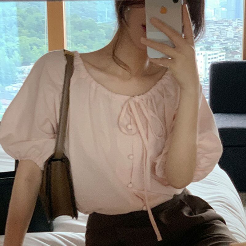 サマーホワイトレースラウンドネックルーズシャツ トップス レディース 夏物 Oネック 5/3 春夏 SS Neploe mi4695837028367