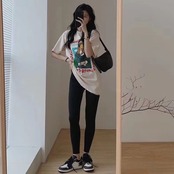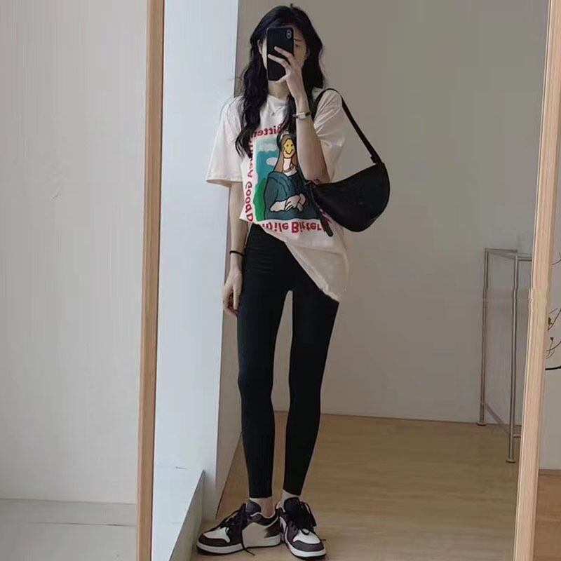 サマーラウンドネックプリントTシャツ ハイウェストウェストスリムパンツ レディース 夏物 Oネック 5/3 春夏 SS Neploe mi4622569649846
