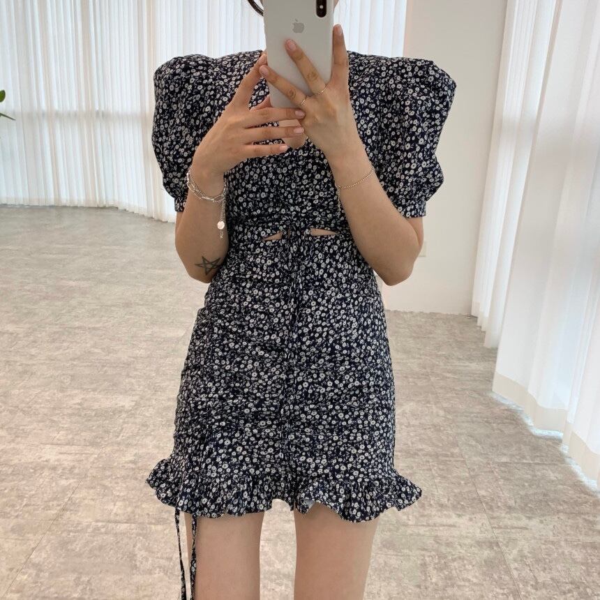 サマーVネックウェスト薄手フローラルドレス 夏物 花柄 5/3 春夏 SS Neploe mi4617236793224