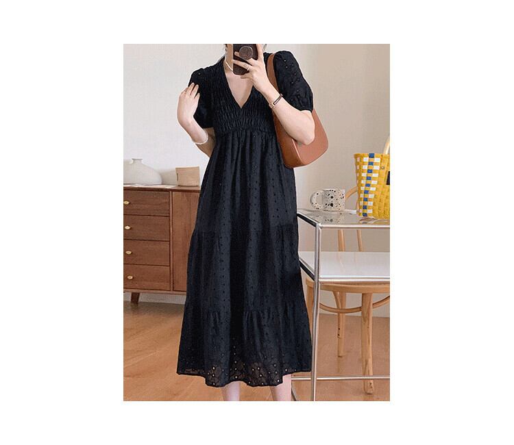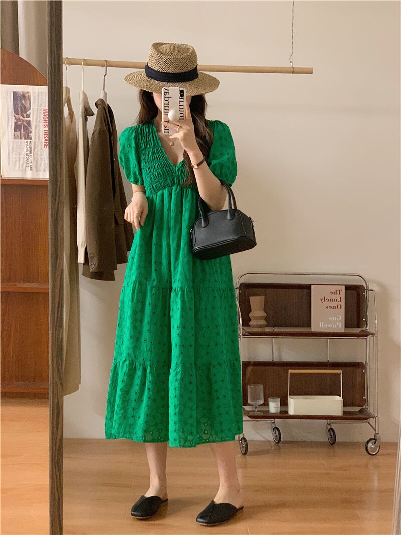 サマースタンダードVネックハイウェストウェストロングドレス レディース レトロ 夏物 5/3 春夏 SS Neploe mi4623314711325