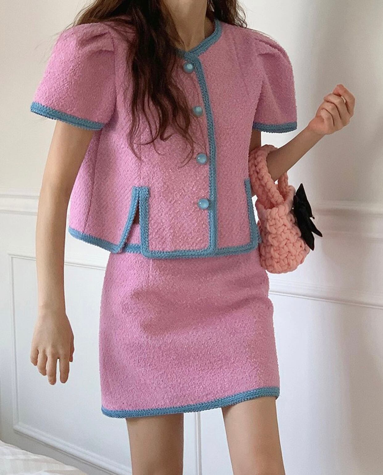 サマーラウンドネックカラーショートコート ツィードスカート レディース 夏物 Oネック 5/3 春夏 SS Neploe mi4629264790698