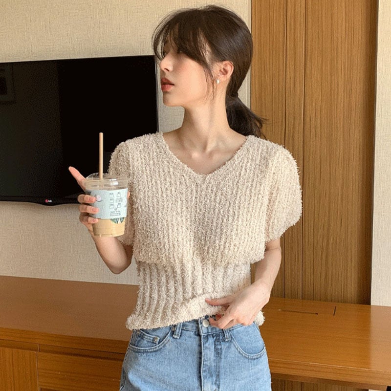 サマーVネックプリーツウェスト薄手ルーズスリーブセーター 夏物 5/3 春夏 SS Neploe mi4639528502308