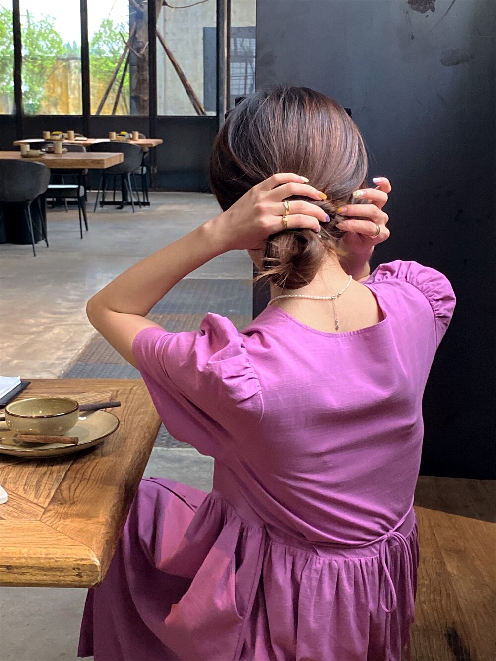 サマーミニマリストスタイルVネックプリーツウェストルーズスリーブドレス ロングスカート 夏物 5/3 春夏 SS Neploe mi4680951432760