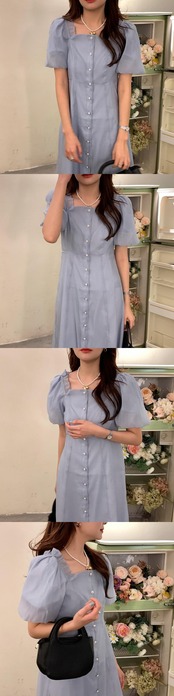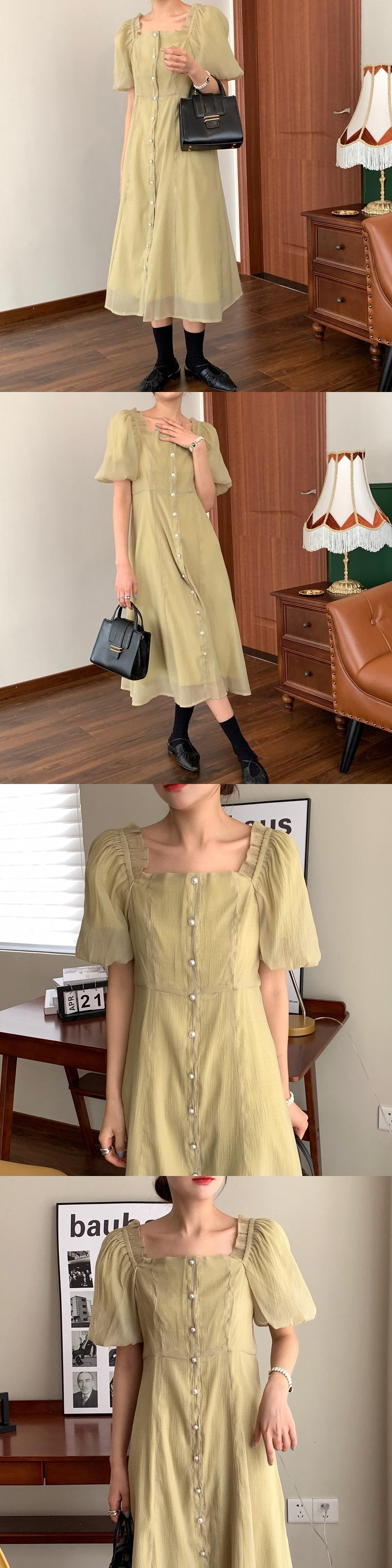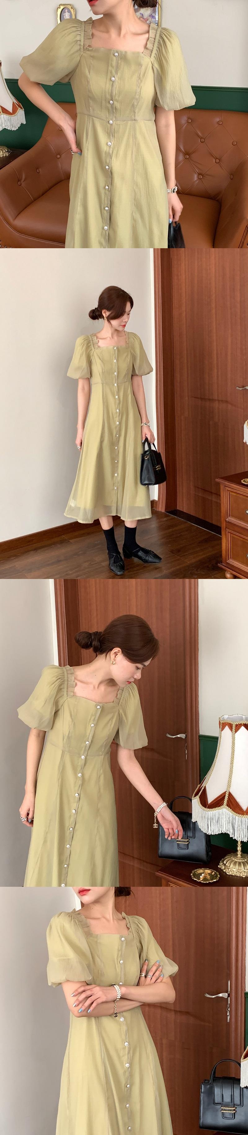 サマーカラーパールボタンスリーブドレス 夏物 真珠 スクウェア ステッチ 5/3 春夏 SS Neploe mi4696563334214