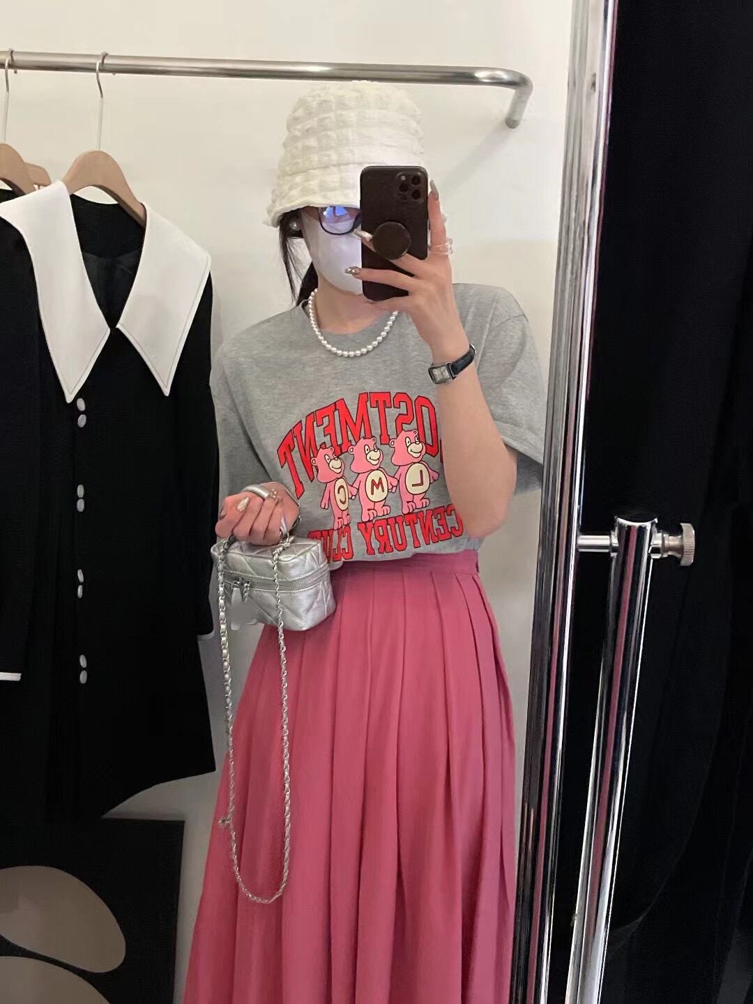 色:Tシャツ,ローズピンクプリーツスカート