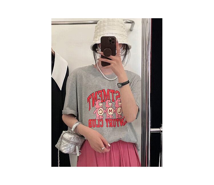 サマーラウンドネックプリント柄ルーズTシャツ ハイウェストウェストプリーツスカート 夏物 Oネック 5/3 春夏 SS Neploe mi468990786521