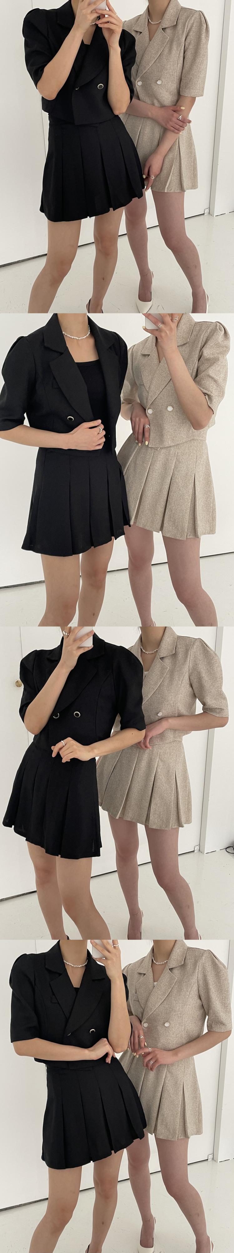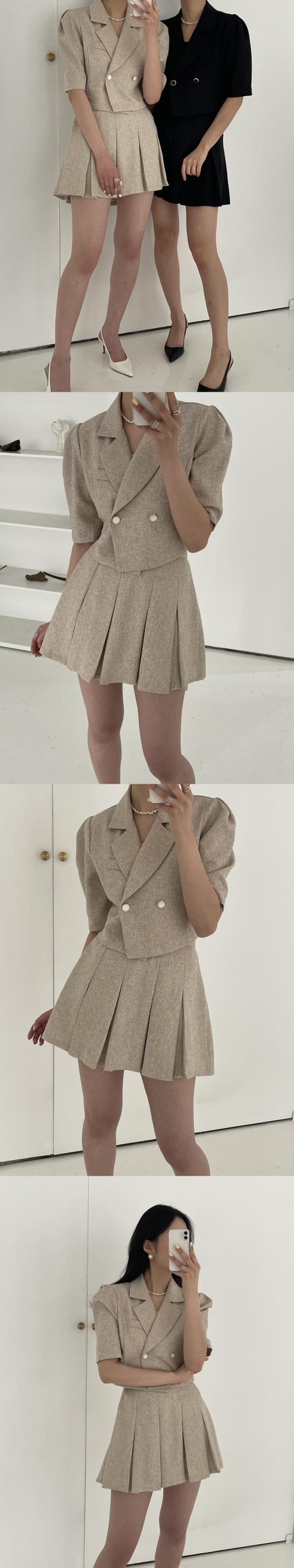サマーカラーダブルボタンスリーブショートジャケット ハイウェストウェストプリーツスカート 夏物 5/3 春夏 SS Neploe mi4693907203238