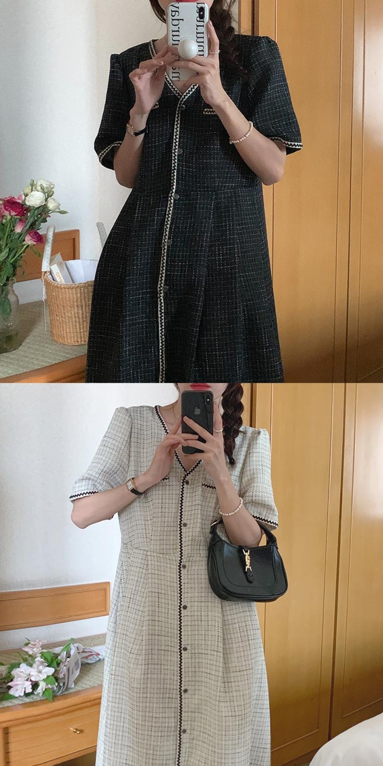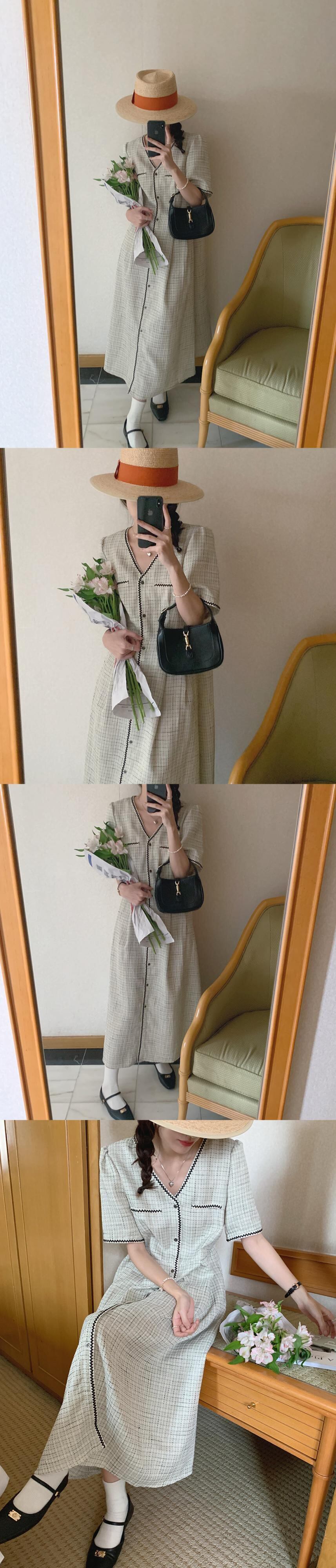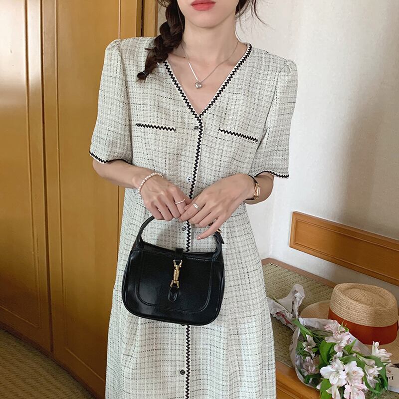 サマースタンダードVネックカラールーズ格子柄ドレス レディース レトロ 夏物 5/3 春夏 SS Neploe mi4683798028675