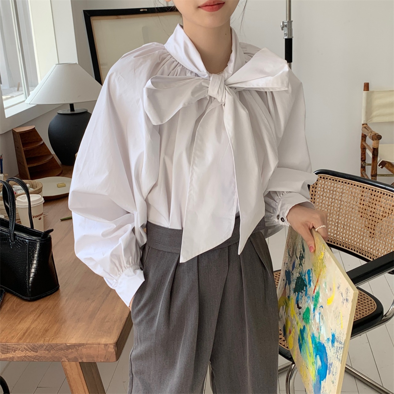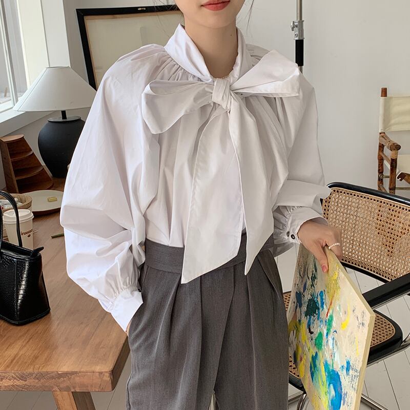 カラーリボンバックスリーブシャツ ハイウェストウェスト 大人ガーリー スウィート キュート カジュアル 5/3 春夏 SS Neploe mi4691374762792