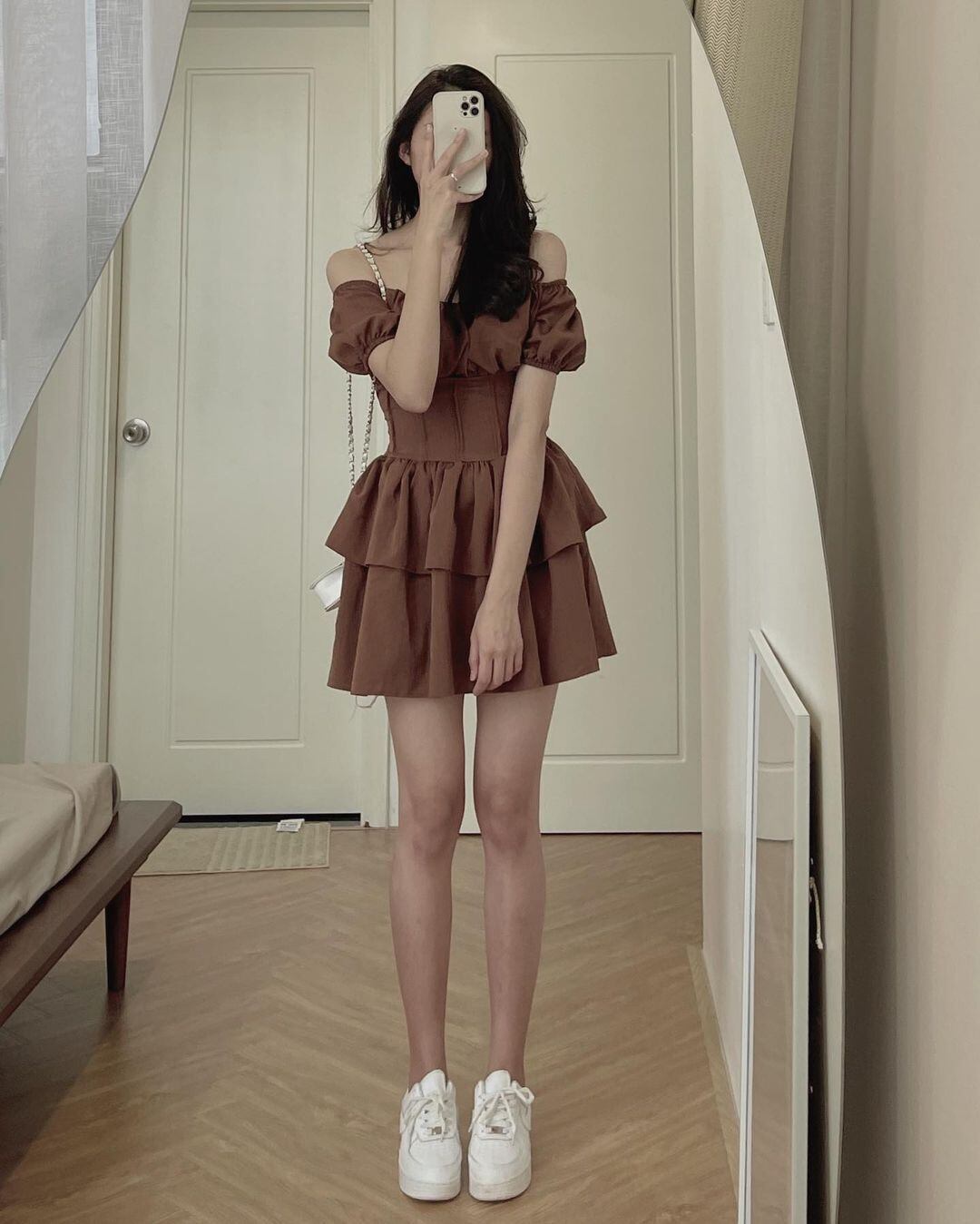 サマースタンダードカラーウェストスリムスリーブドレス レトロ 夏物 5/3 春夏 SS Neploe mi4623264210335