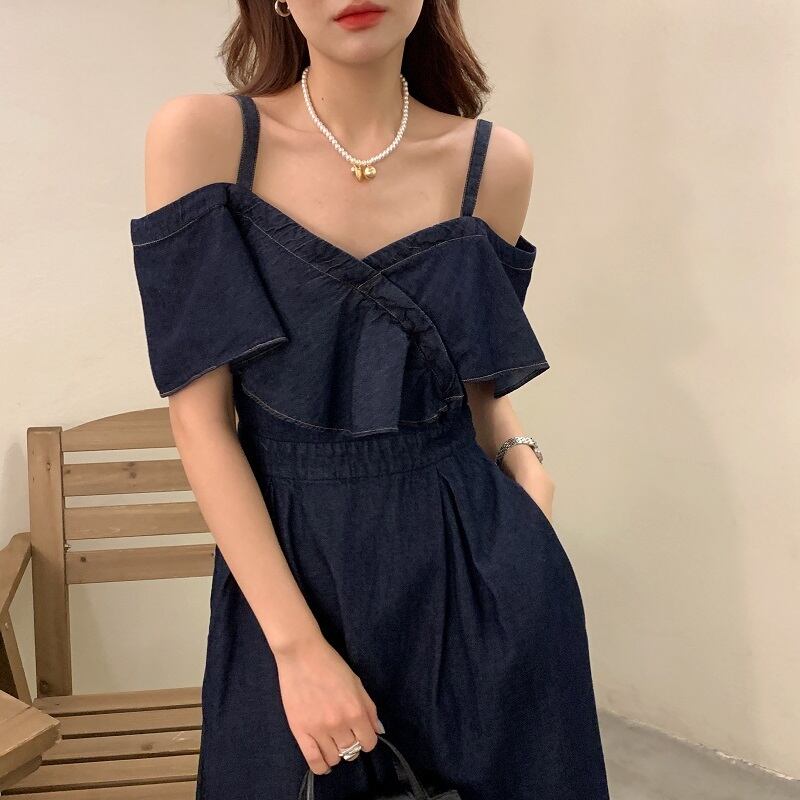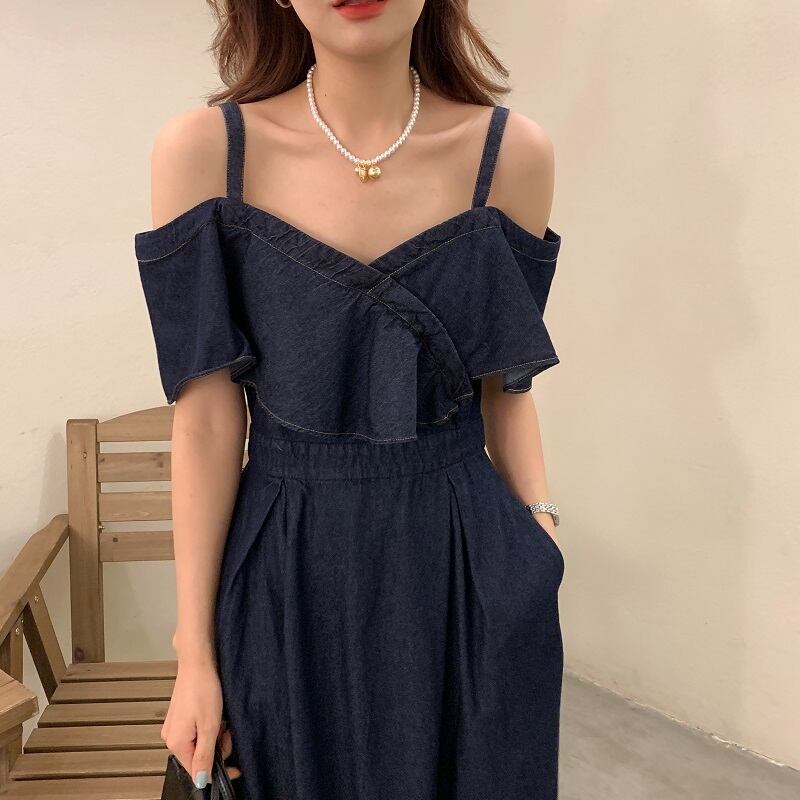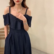 サマースタンダードカラーウェストポケットドレス レトロ 夏物 スクウェア ステッチ 5/3 春夏 SS Neploe mi4617871959734