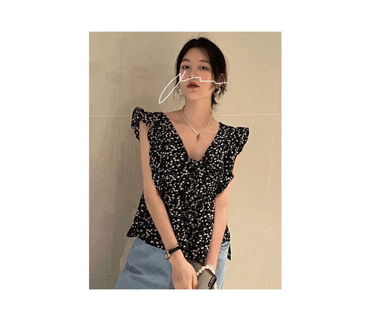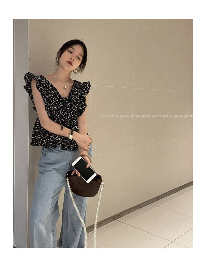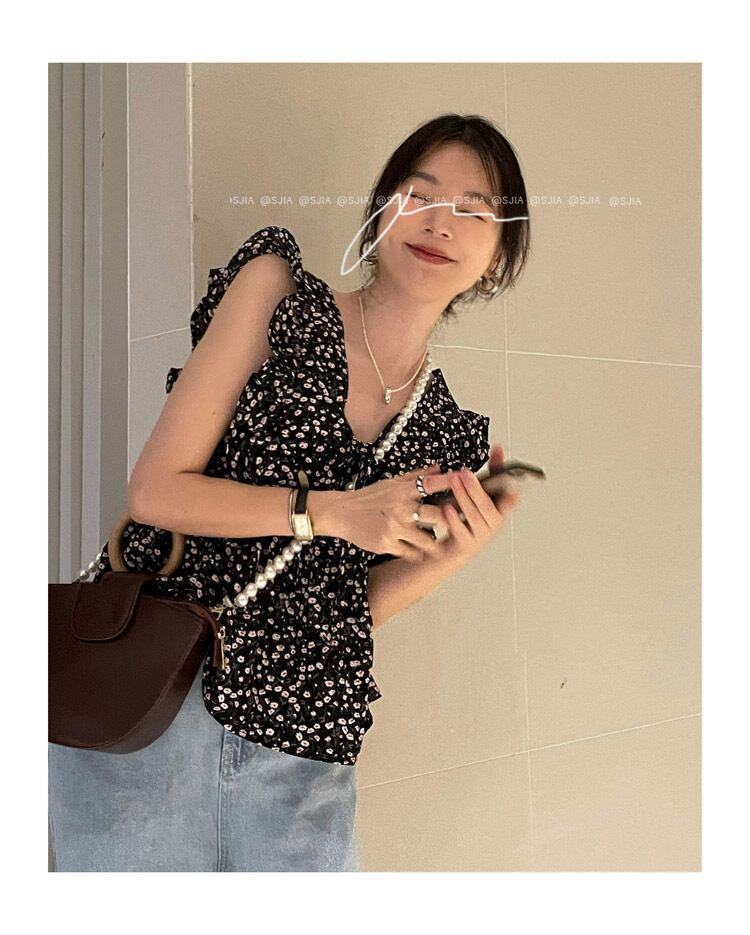 スタンダードVネックプリーツウェストフローラルシャツ レトロ 花柄 5/3 春夏 SS Neploe mi4647212137052