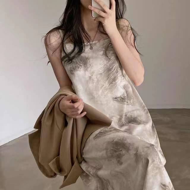 サマースタンダードノースリーブドレス ロングスカート レトロ 夏物 5/3 春夏 SS Neploe mi4699799144530
