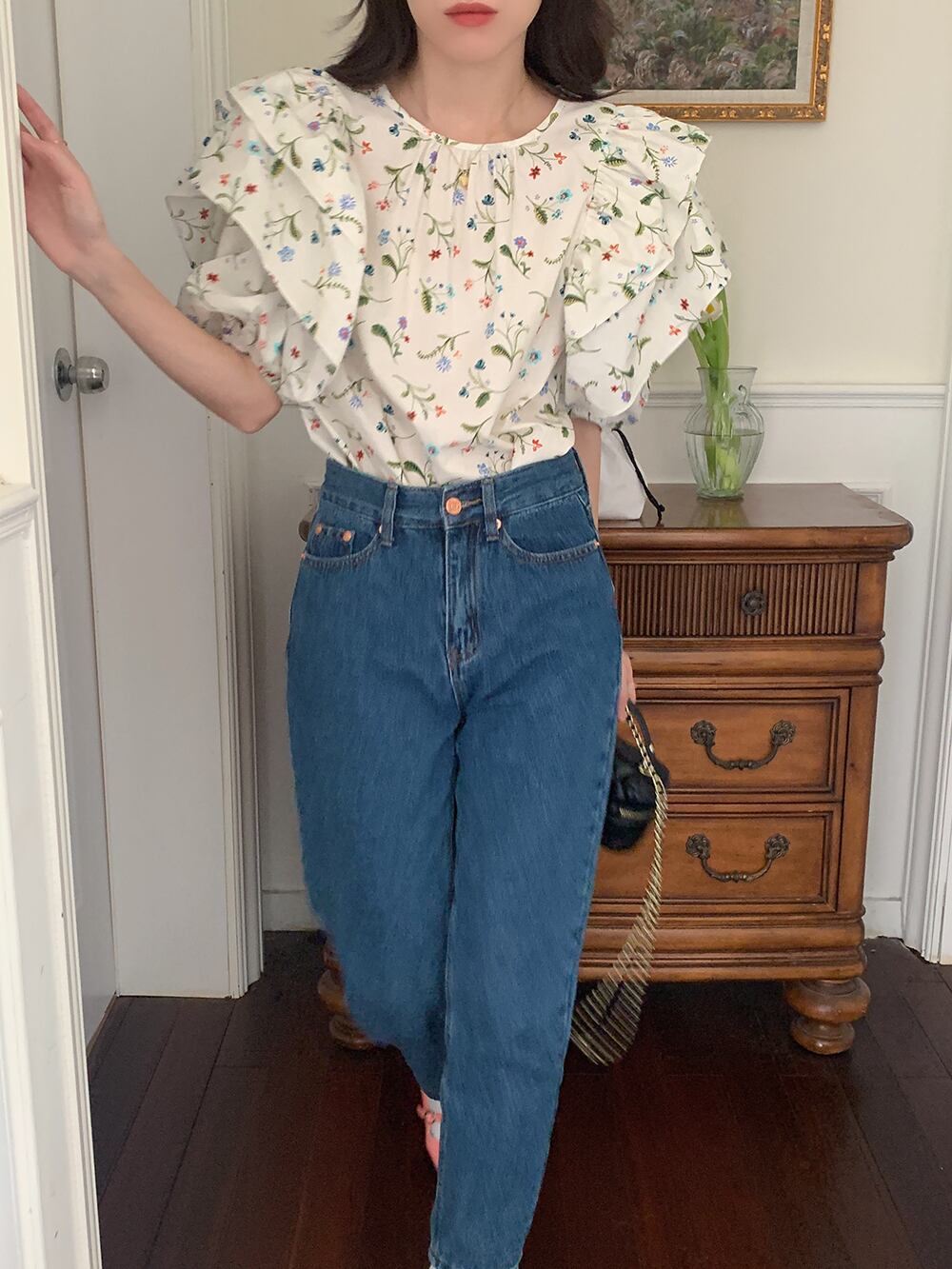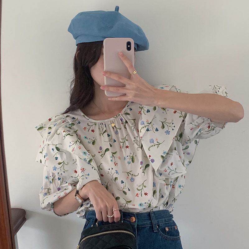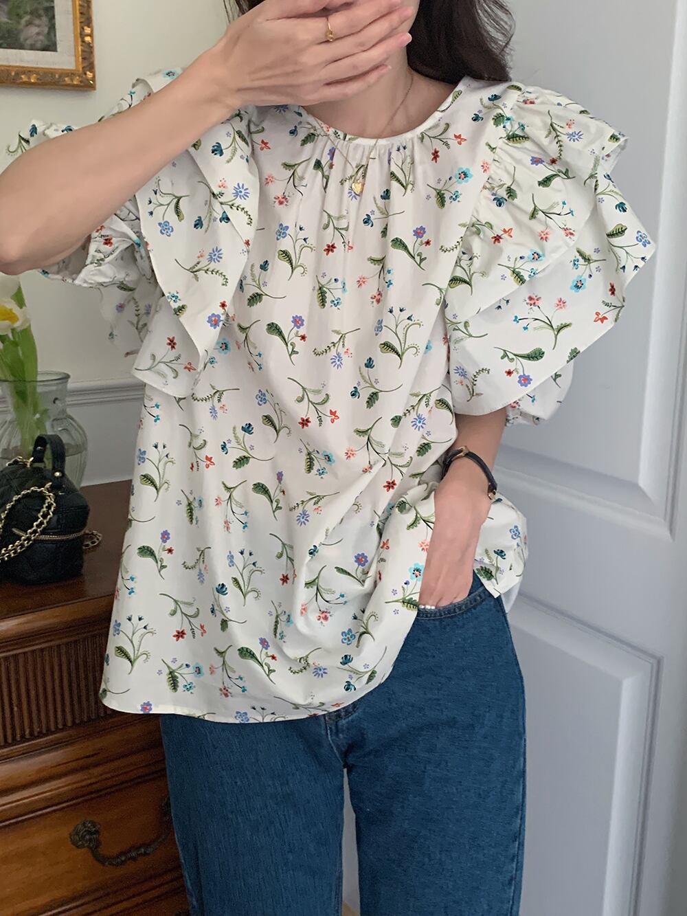 サマーラウンドネックルーズシフォンフローラルシャツ 夏物 花柄 Oネック 5/3 春夏 SS Neploe mi4649012827551
