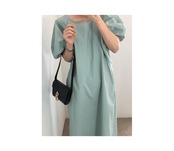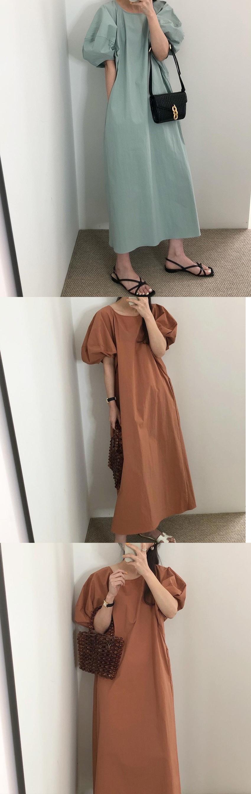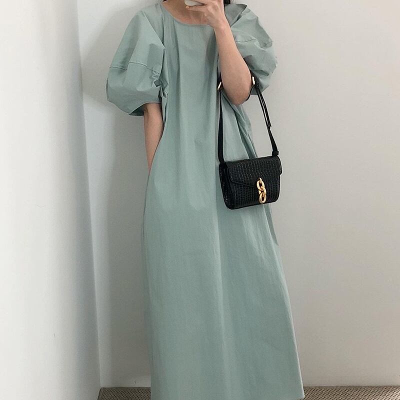ラウンドネックソリッド カラールーズカジュアルスリーブドレス ロングスカート ランタンスリーブ Oネック ソリッドカラー 5/3 春夏 SS Neploe mi4628975404707