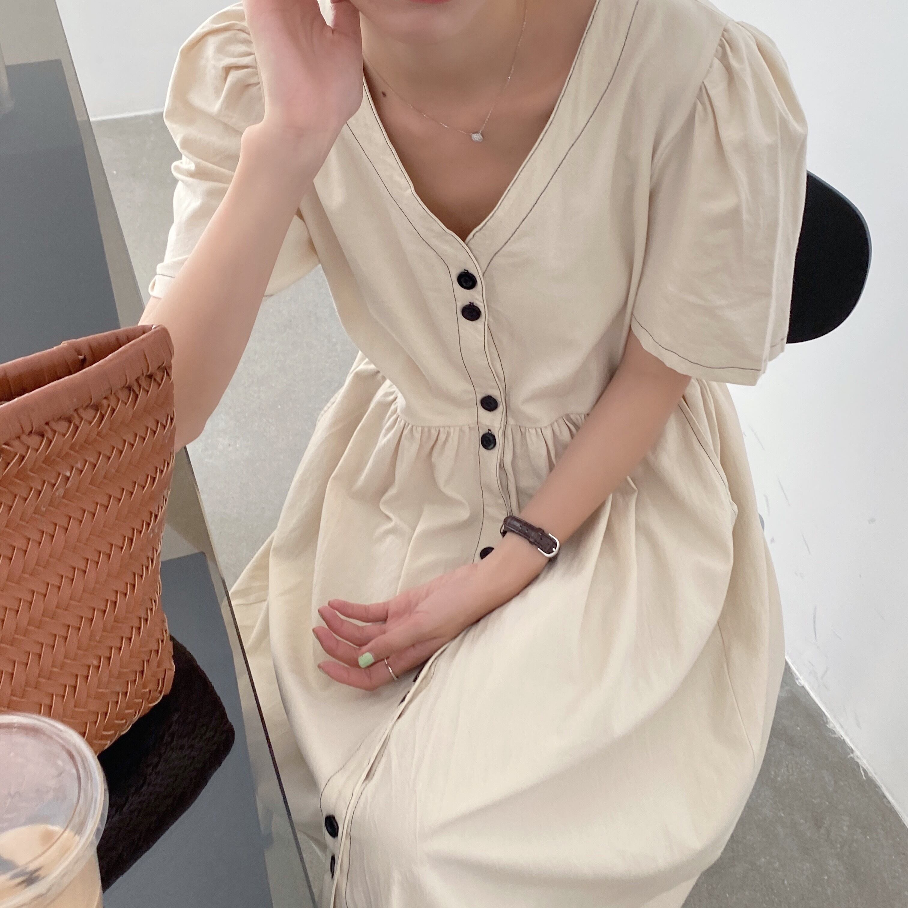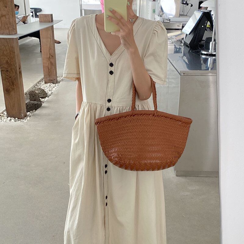サマーVネックカラーポケットルーズロングドレス レディース エレガント 夏物 5/3 春夏 SS Neploe mi4651505361426