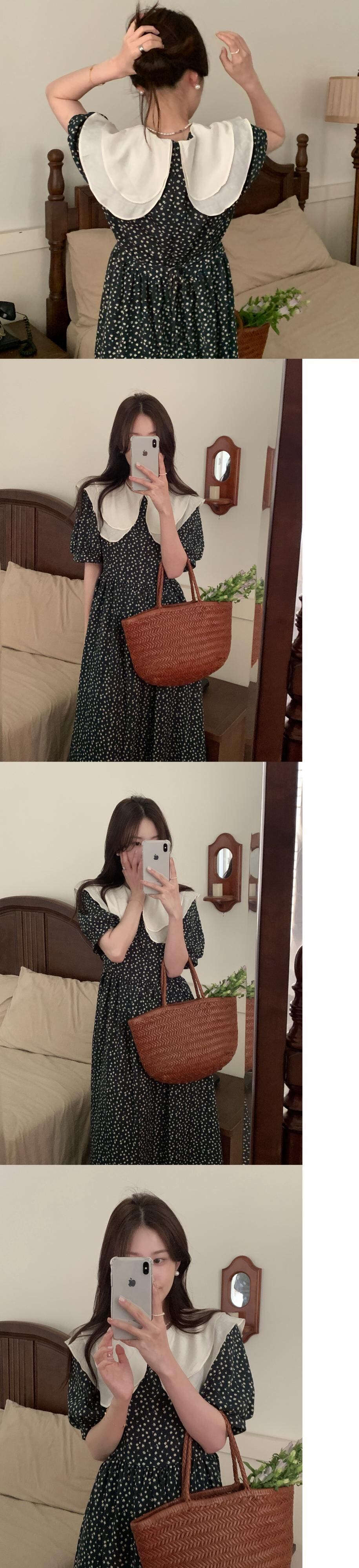 サマースタンダードプリーツウェストスリーブ水玉フローラルドレス レトロ 夏物 花柄 5/3 春夏 SS Neploe mi4636864569223