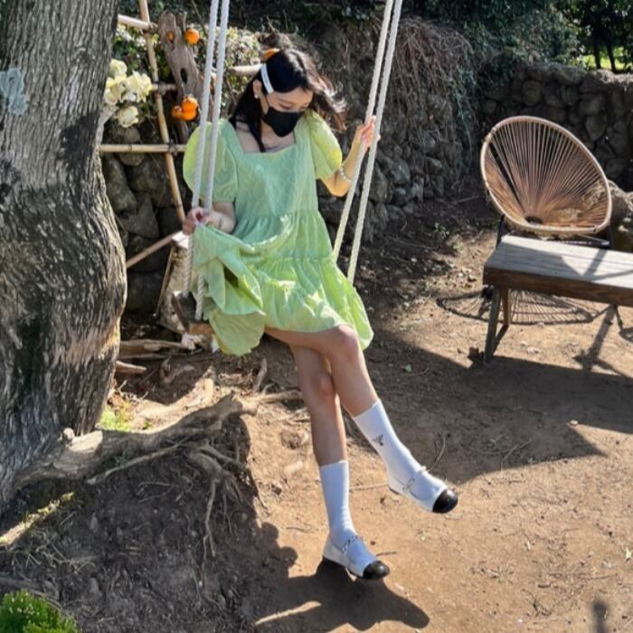 スタンダードハイウェストウェストルーズドレス レッド レトロ スクウェア 5/17 mi4687074125008