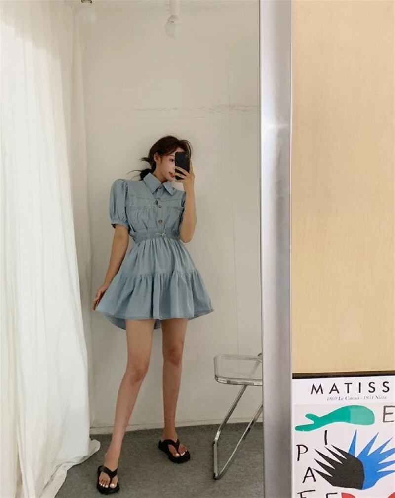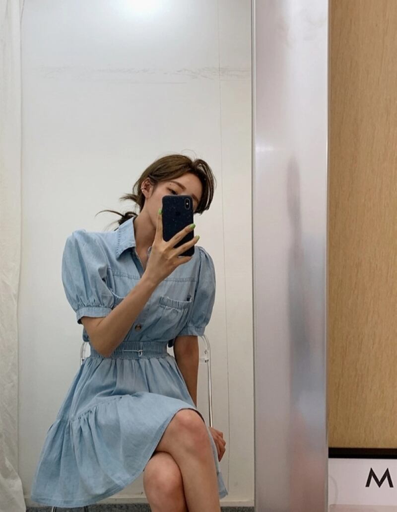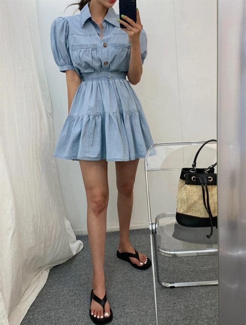 シャツ ギャザーストレッチハイウェストスカート サマー エラスティック 伸縮 夏物 5/17 mi461902449459