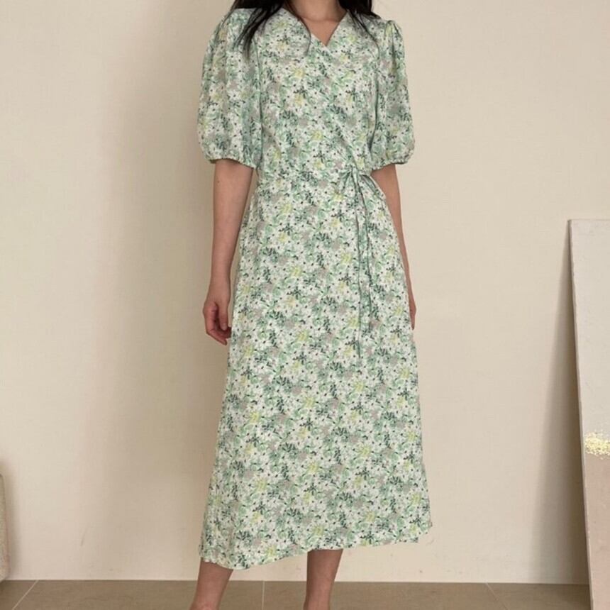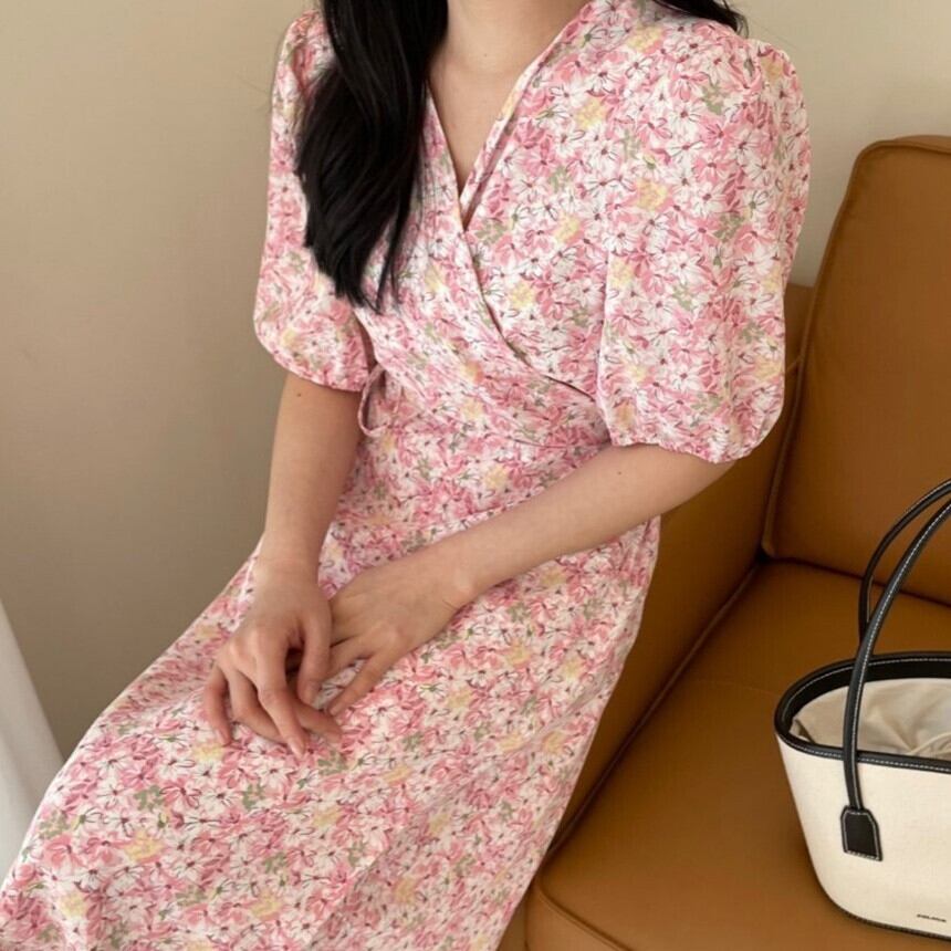 サマースタイルVネックウェストスリムフローラルロングドレス エレガント 夏物 花柄 5/17 mi4673827625265