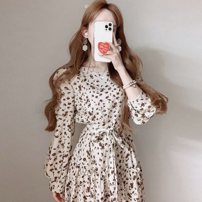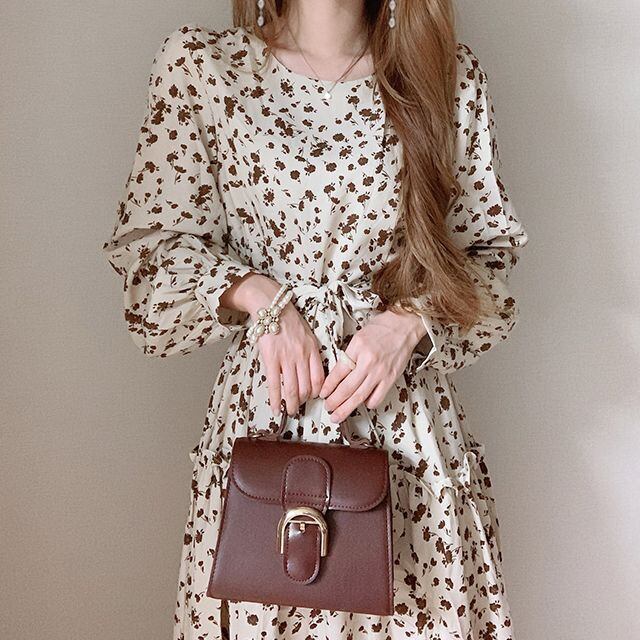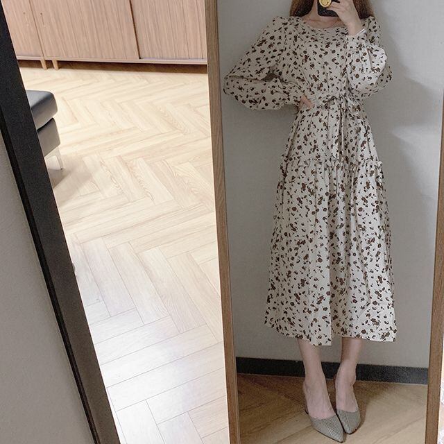 スプリングオータムドレス ルーズウェスト薄手フローラル 春物 秋物 花柄 5/17 mi4682420412352