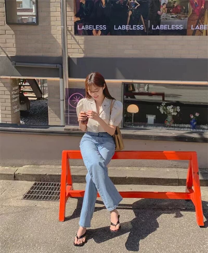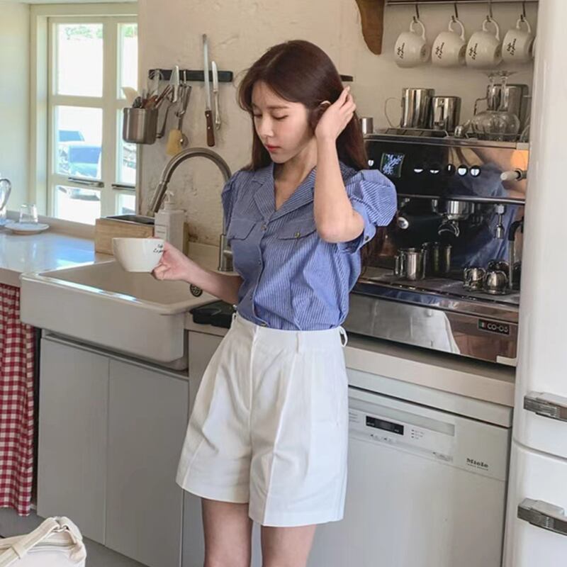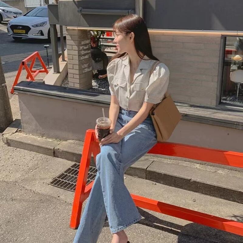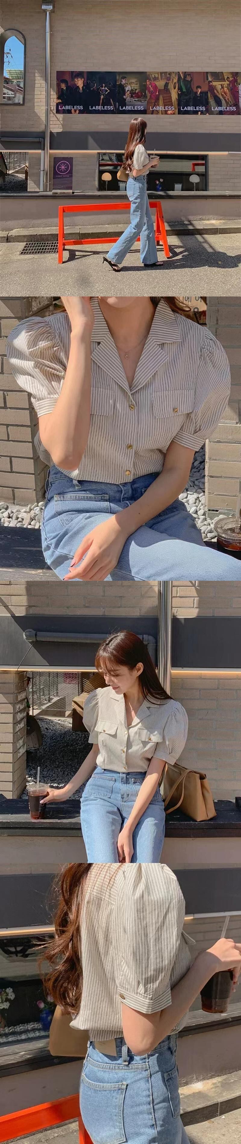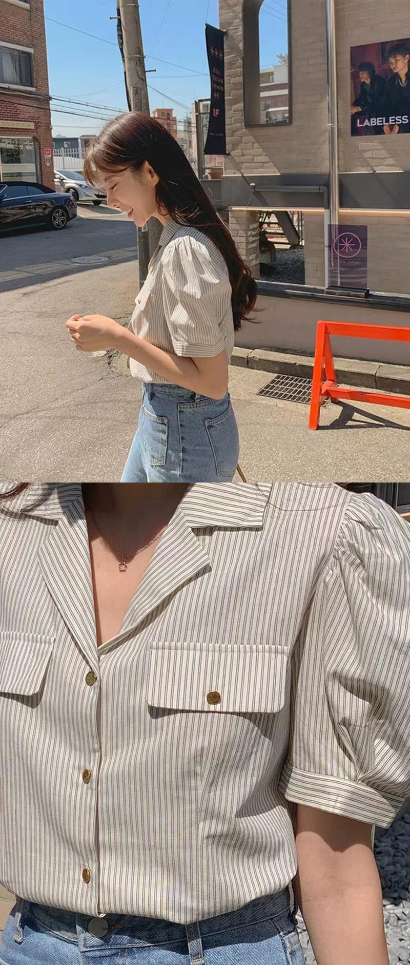 カラーストライプトップス ベーシックカジュアル薄手シャツ 5/17 mi4660150502583