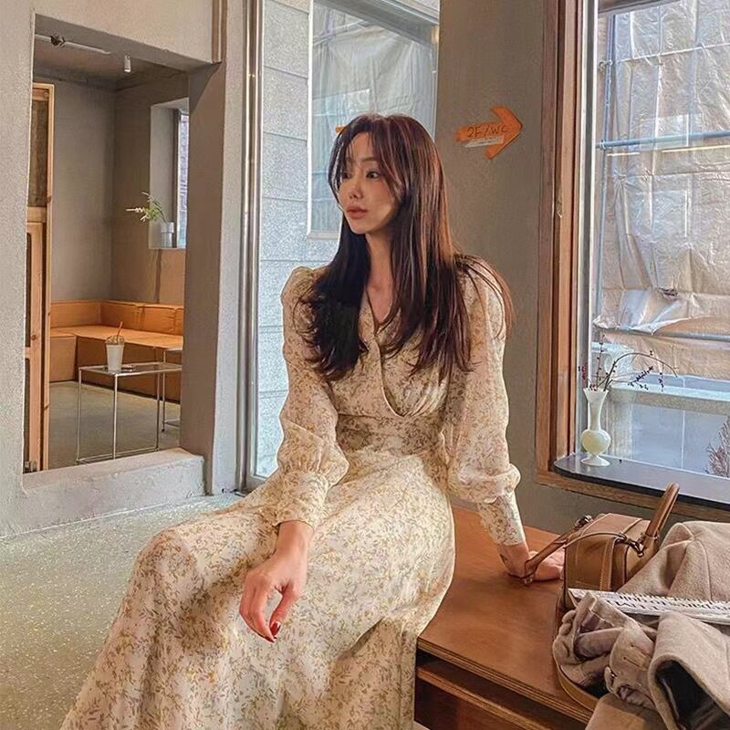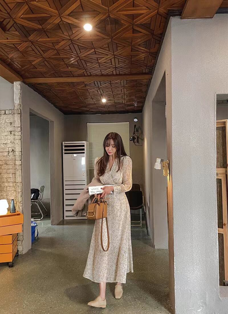 スプリングスタイルVネックウェストフローラルドレス シフォン 春物 花柄 5/17 mi4661805721697