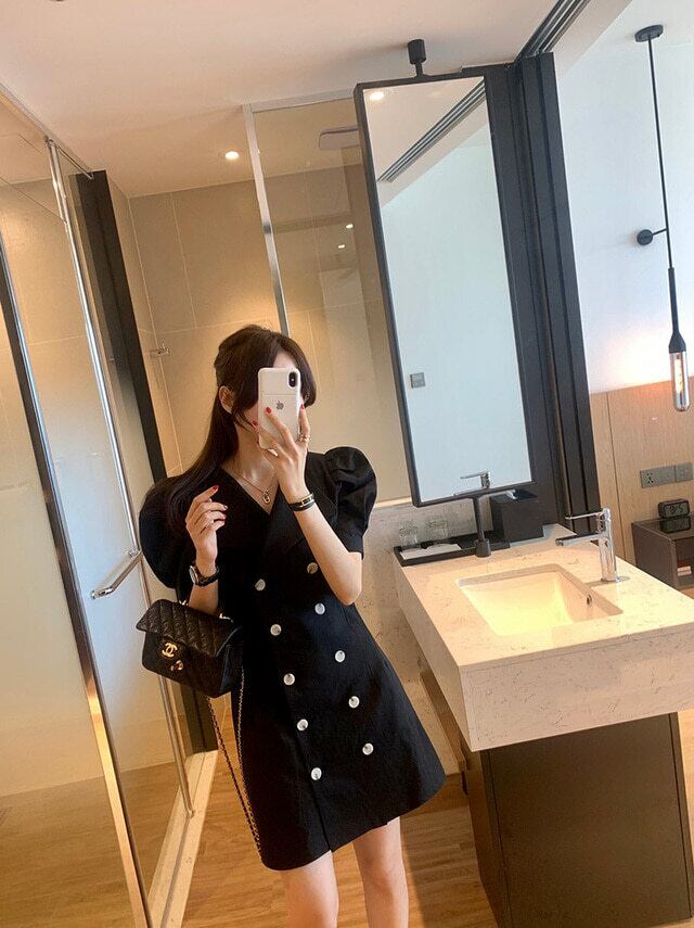 サマーカラーダブルブレストルーズドレス ショートスカート レディース 夏物 5/17 mi4683284111254