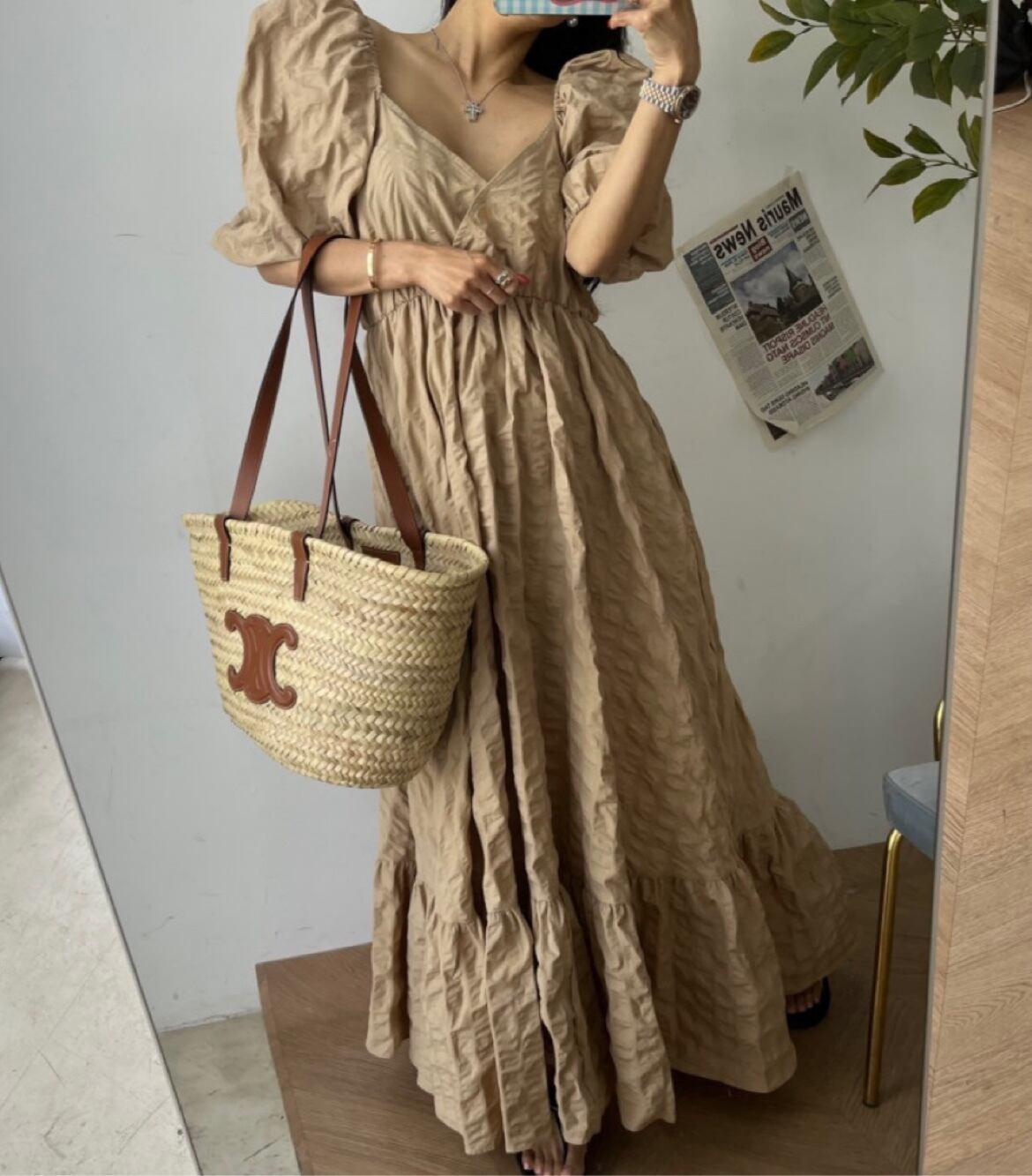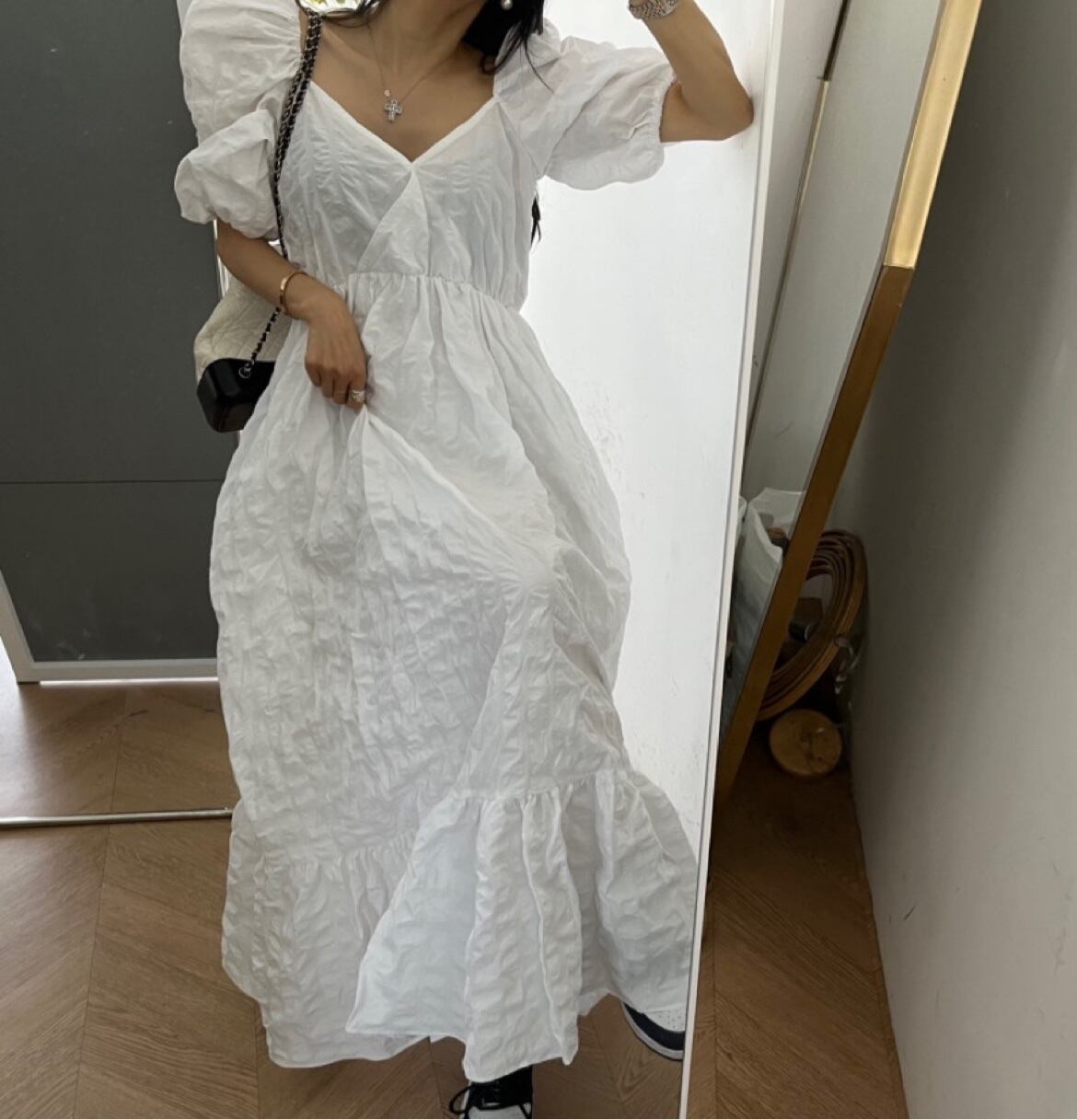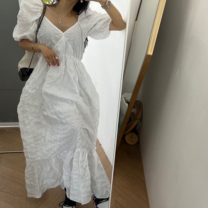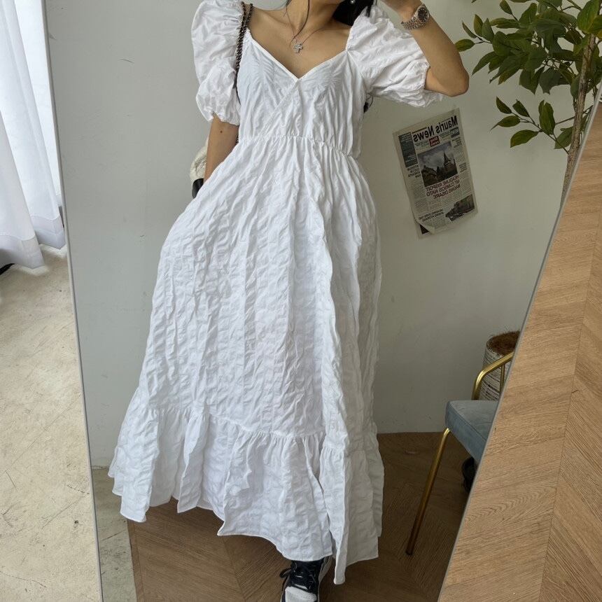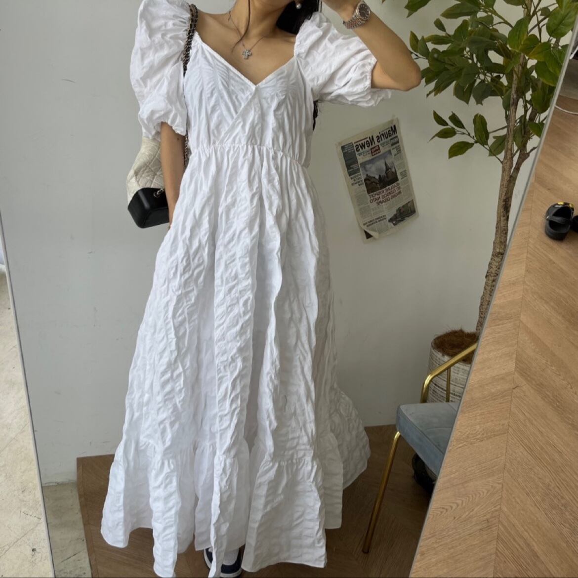 スタイルカラープリーツスリーブラッフルドレス エレガント スクウェア 5/17 mi4685914007936