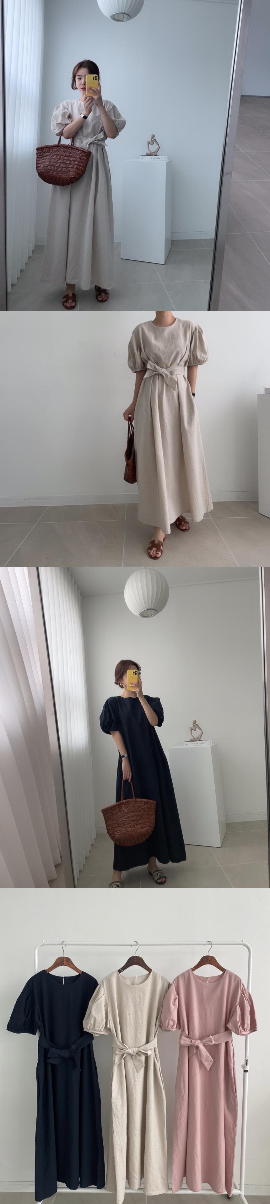 ラウンドネックリボンウェストスリムポケットスリーブドレス Oネック 5/17 mi462143229901