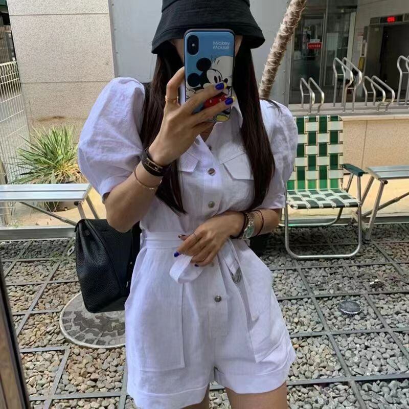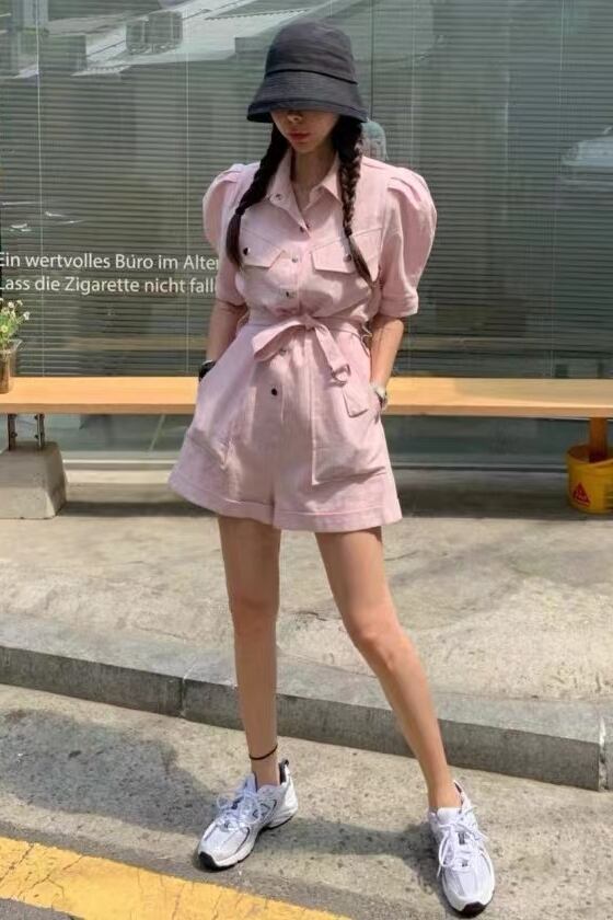 サマースタンダードオーバーオール ベルト ハイウェストウェストワンピースショーツ レディース レトロ 夏物 ハーネス ブルマー 5/17 mi4658550455562