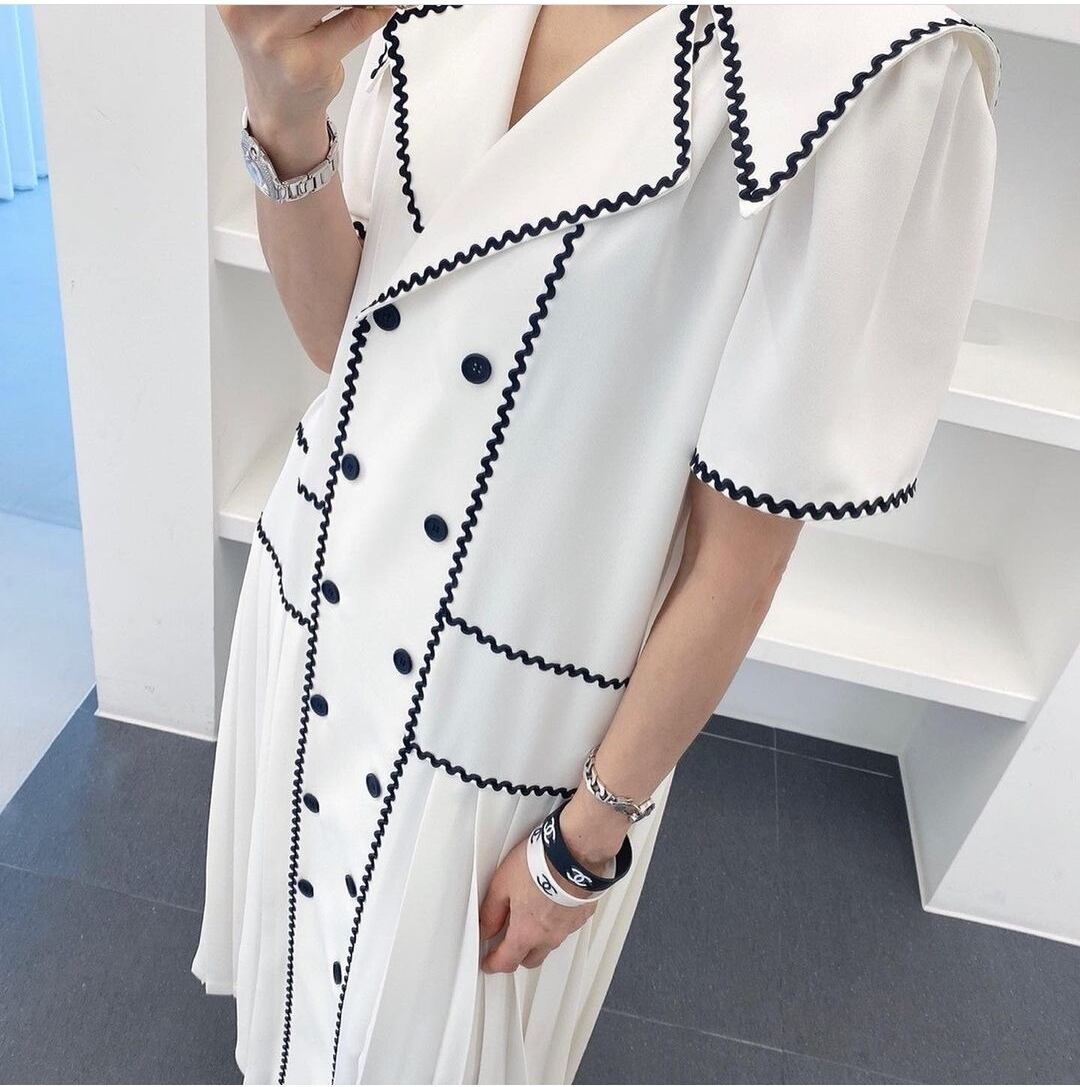 スタイルサマースタンダードレースダブルブレストルーズスリーブプリーツドレス レトロ 夏物 5/17 mi4644688560498