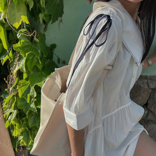 スタンダードホワイトルーズドレス ロングスカート レトロ 5/17 mi4661602592616
