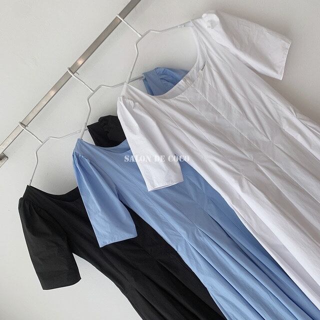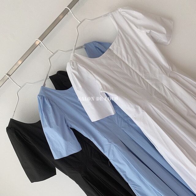 ソリッド カラースタンダードウェスト薄手スリーブプリーツドレス レトロ ソリッドカラー スクウェア 5/17 mi4694650510349