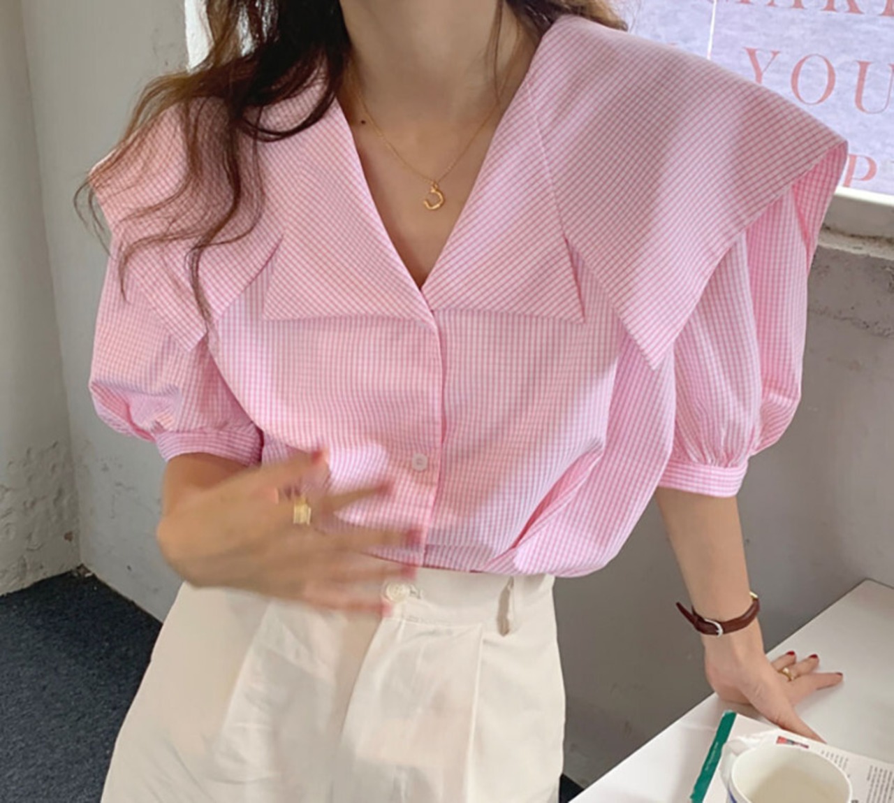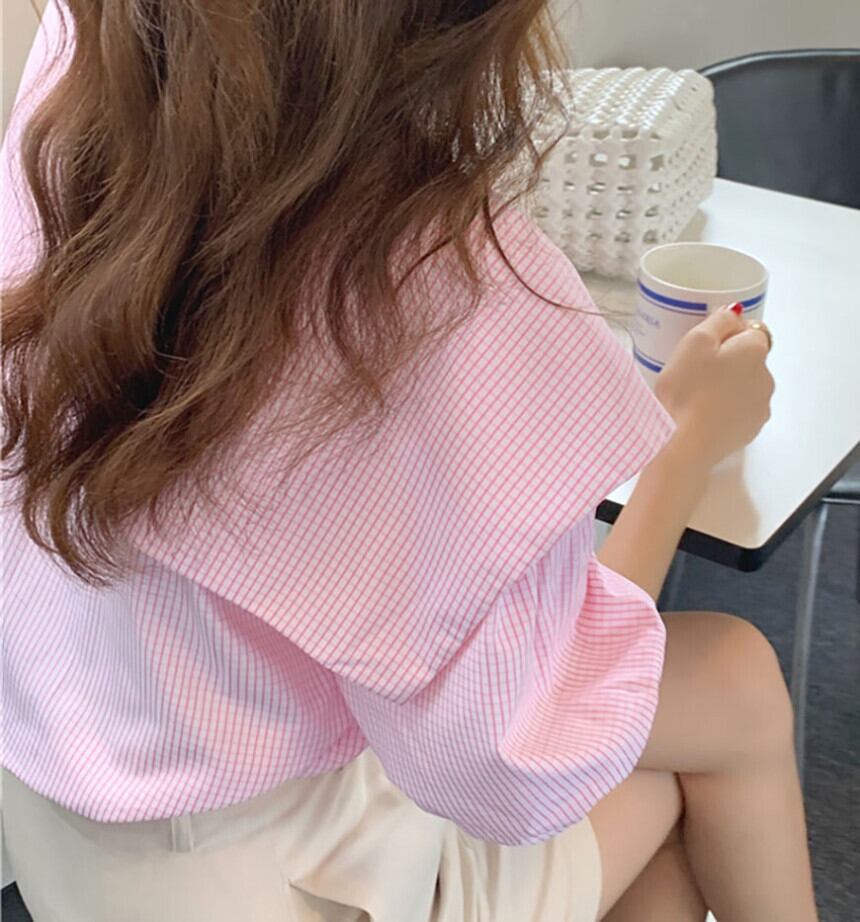 格子柄スリーブトップス ルーズシャツ スタイル 5/17 mi463520492591
