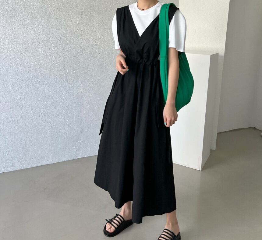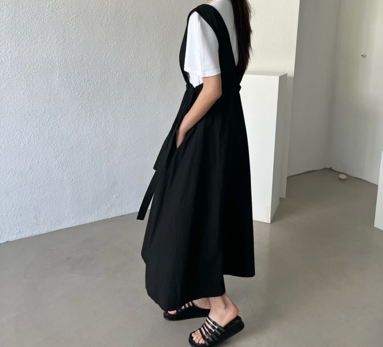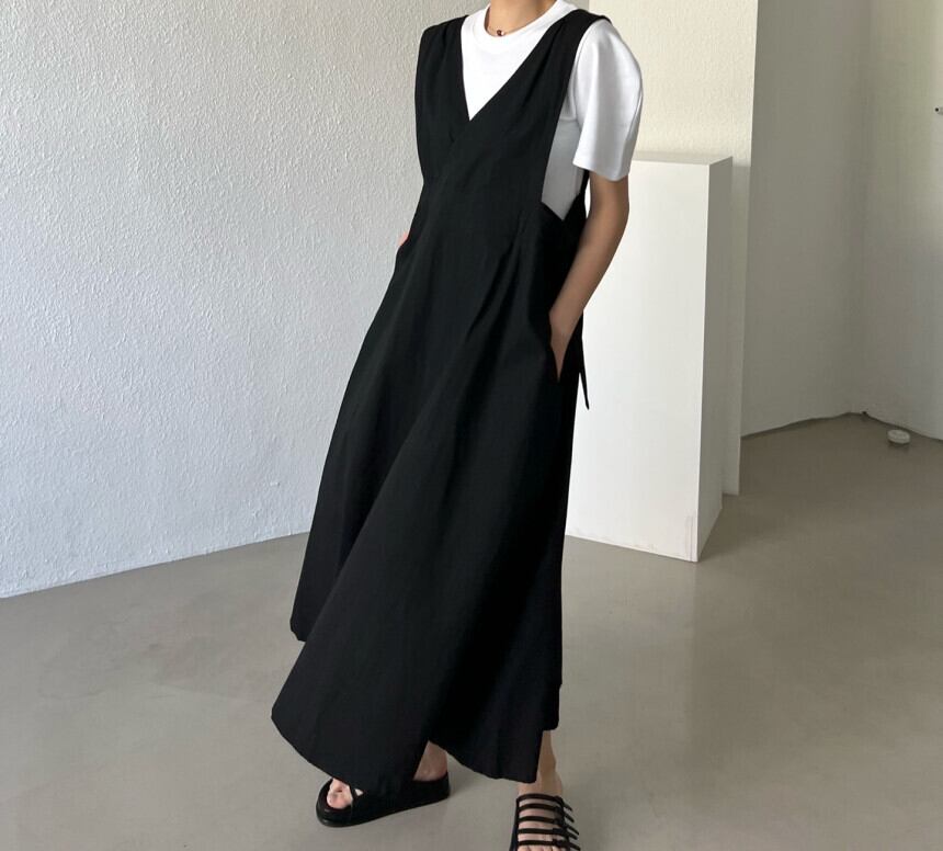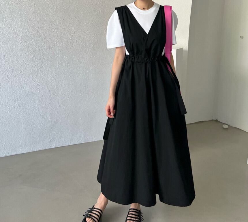 スタイルスタンダードVネックギャザーウェストポケットノースリーブドレス レディース レトロ 5/17 mi4642236162307