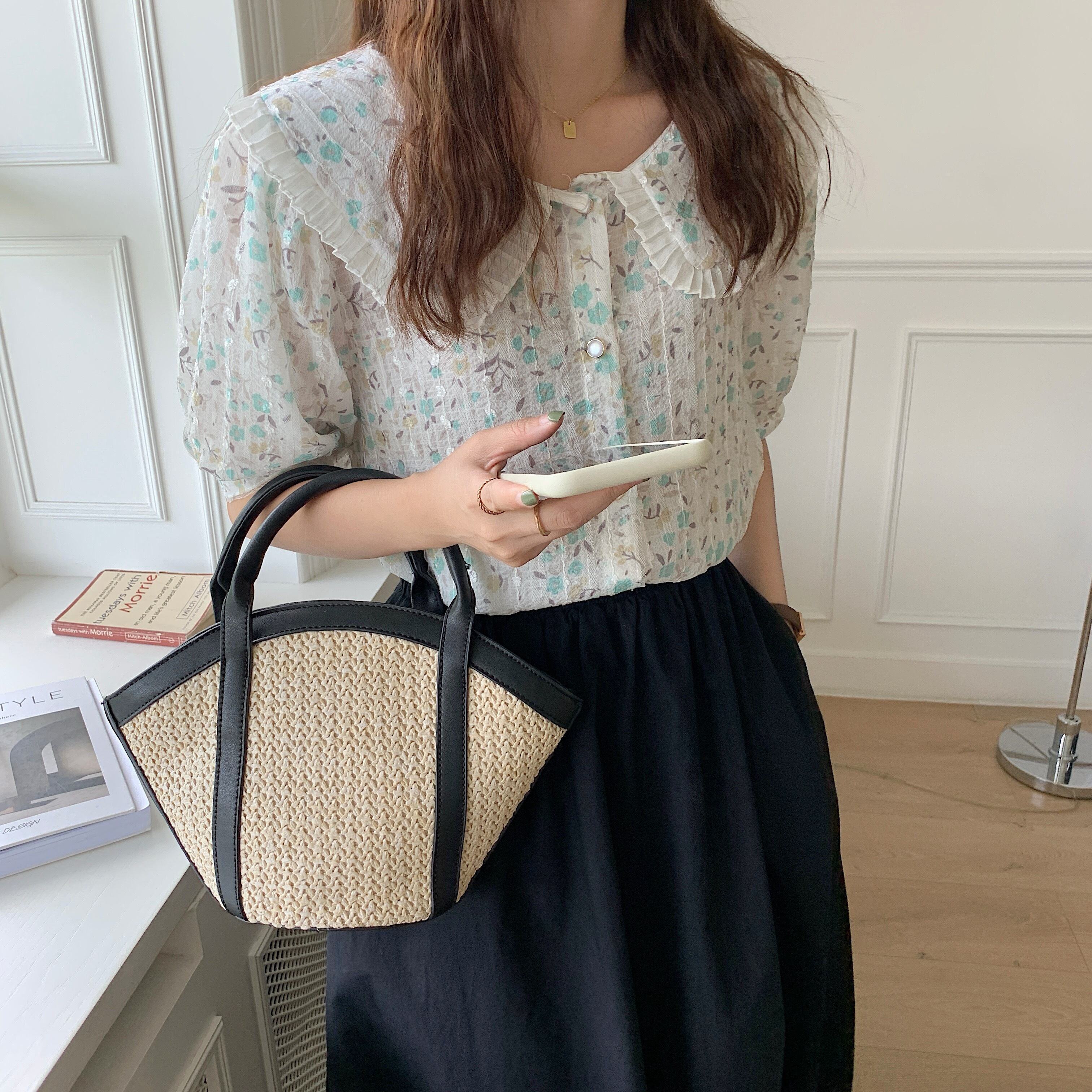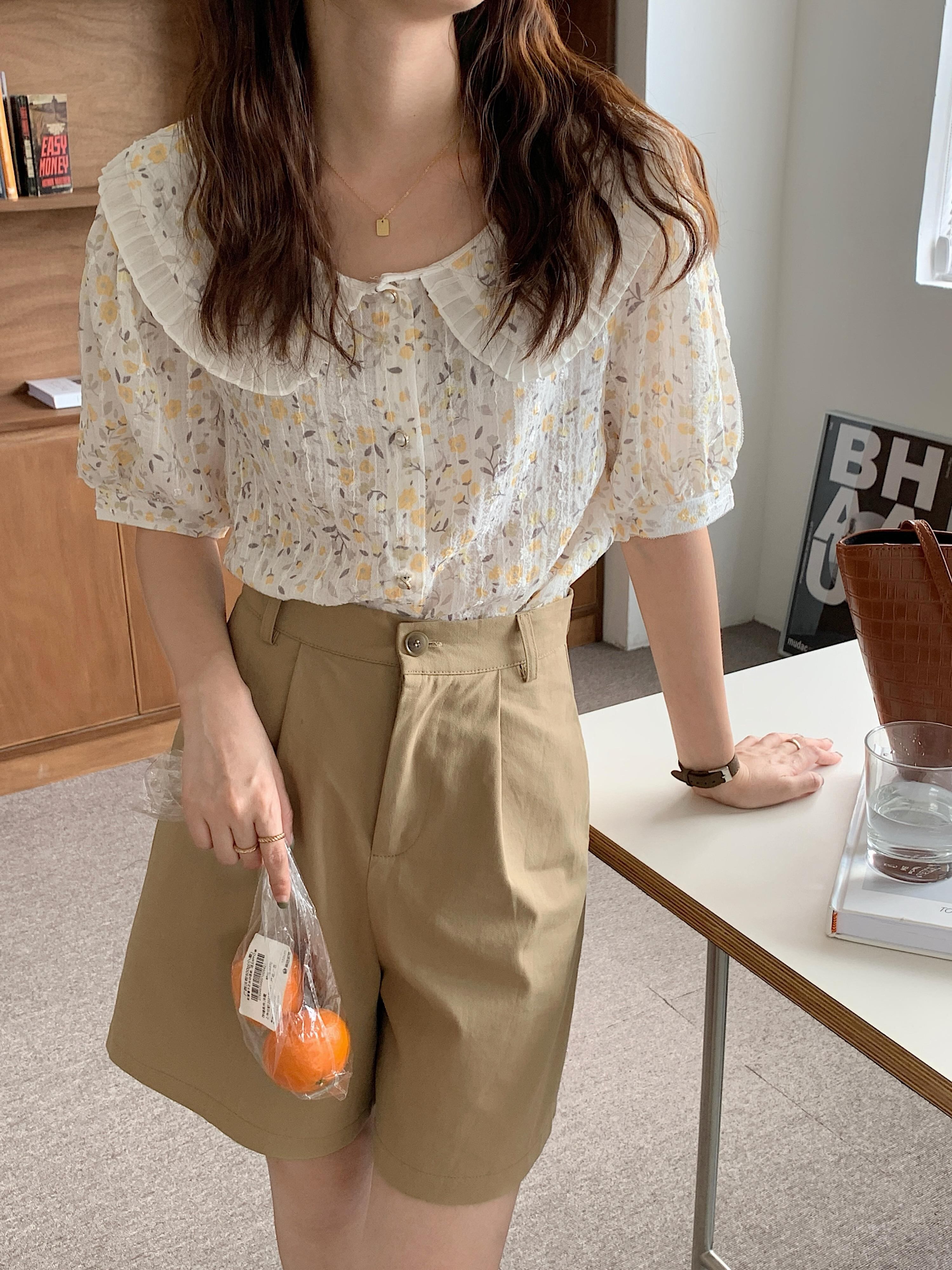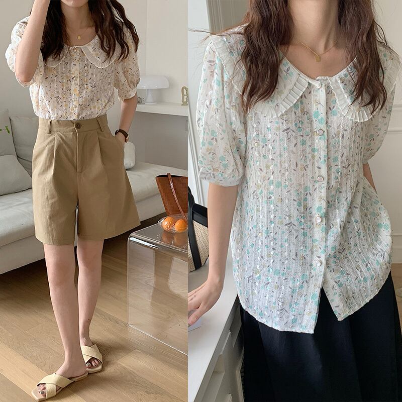 スタイルカラーFlowerデザイン 薄手シャツ フラワーデザイン ステッチ 5/17 mi4678811125505