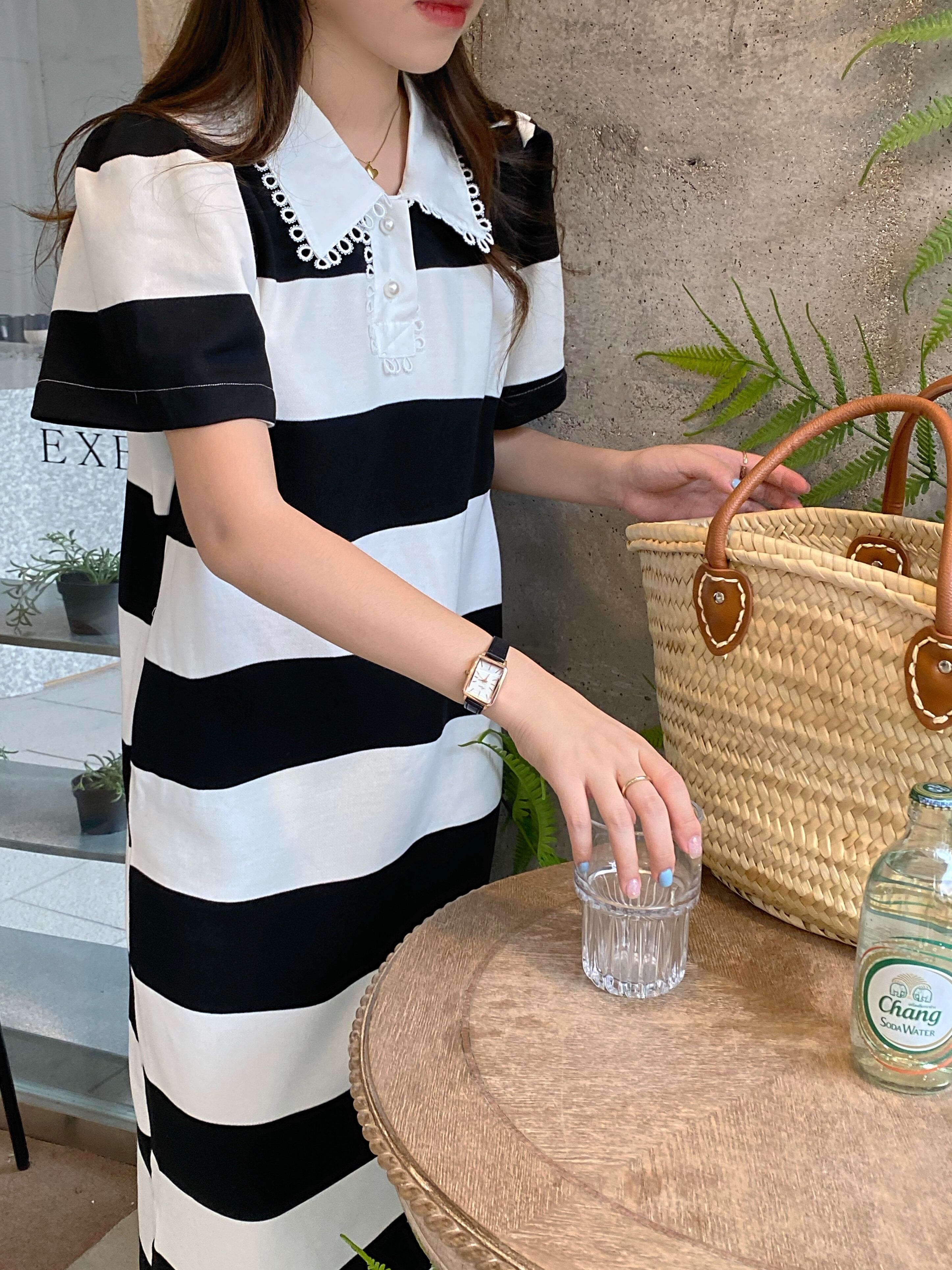 カラーカジュアルストライプスリットドレス 5/17 mi4651996182563