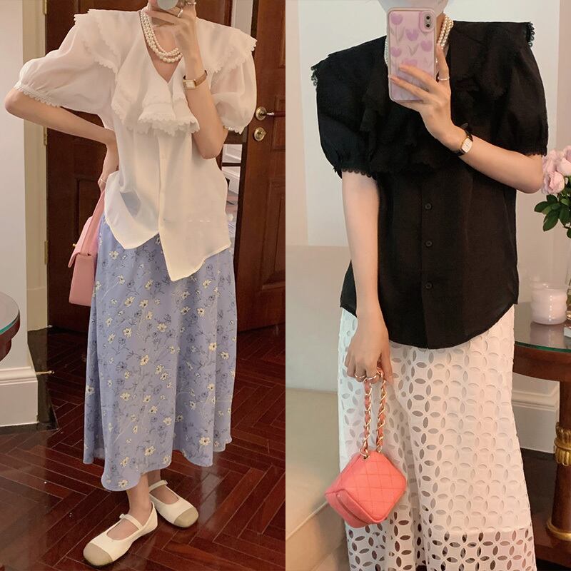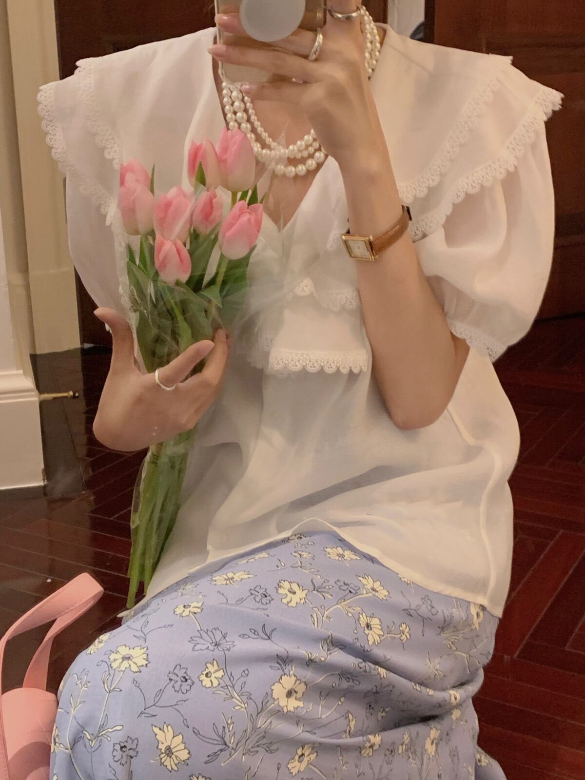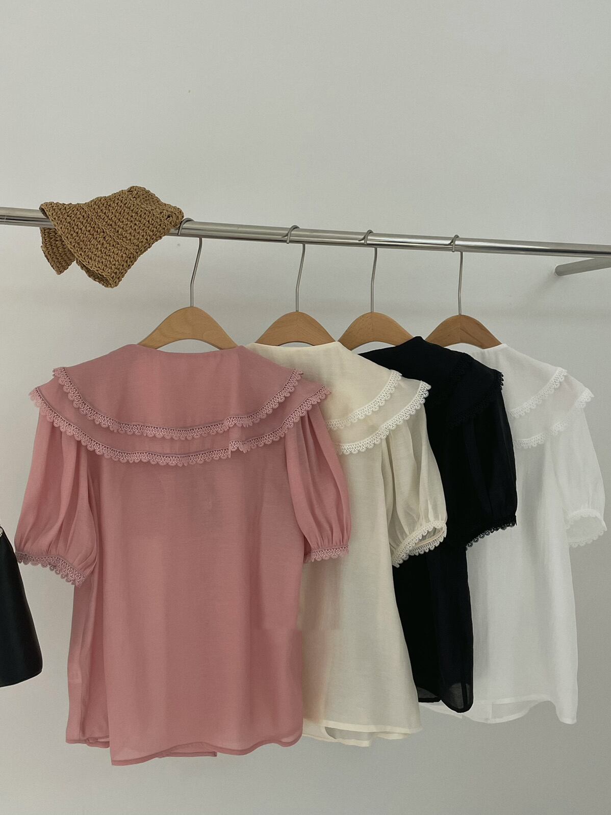 ダブルレースカラーシャツ サマートップス 夏物 ステッチ 5/17 mi4635596628152