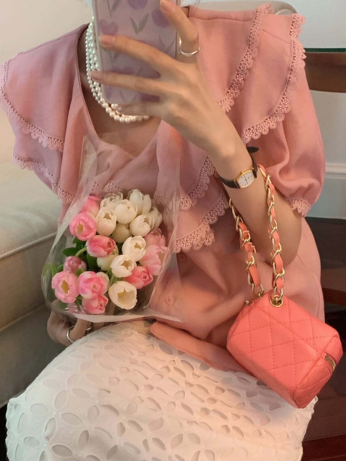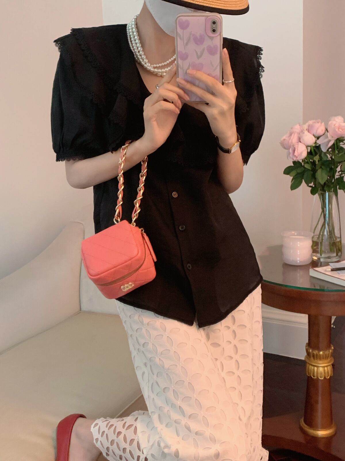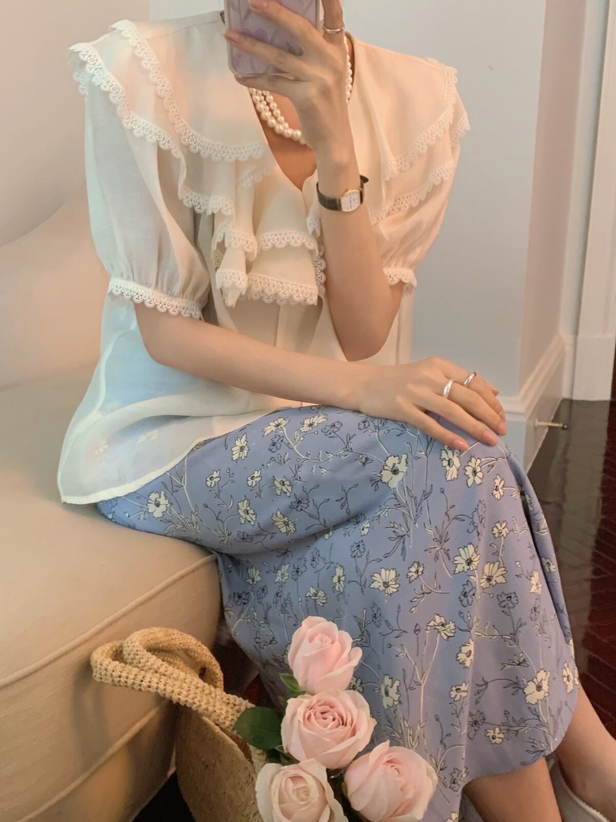 ダブルレースカラーシャツ サマートップス 夏物 ステッチ 5/17 mi4635596628152
