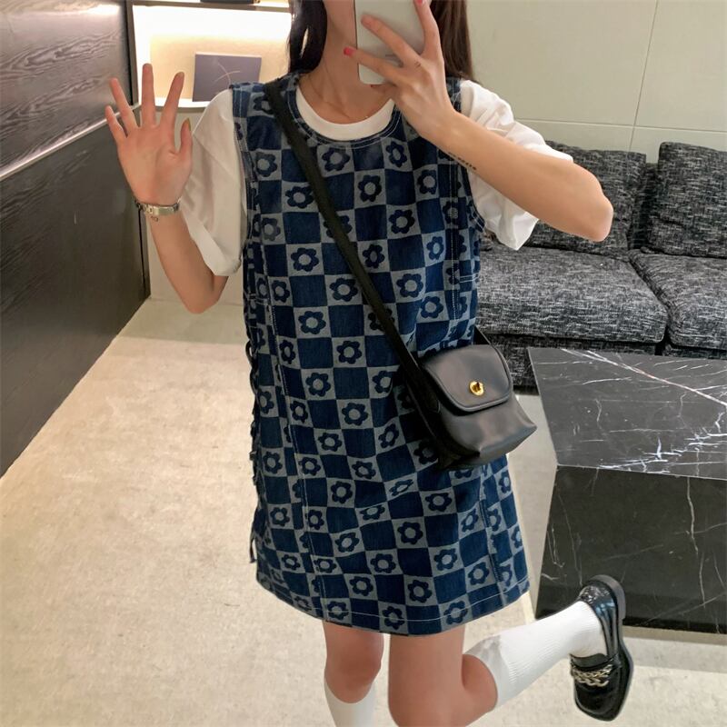 ルーズプリントスカート ドレス レッド 大人ガーリー スウィート キュート カジュアル 5/17 mi466768751840