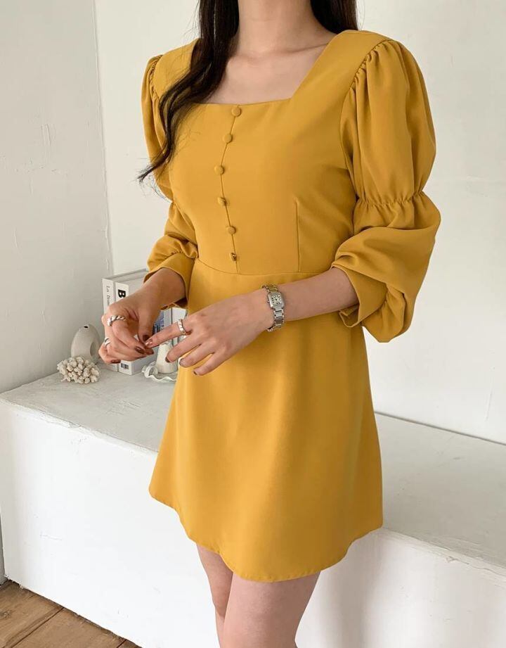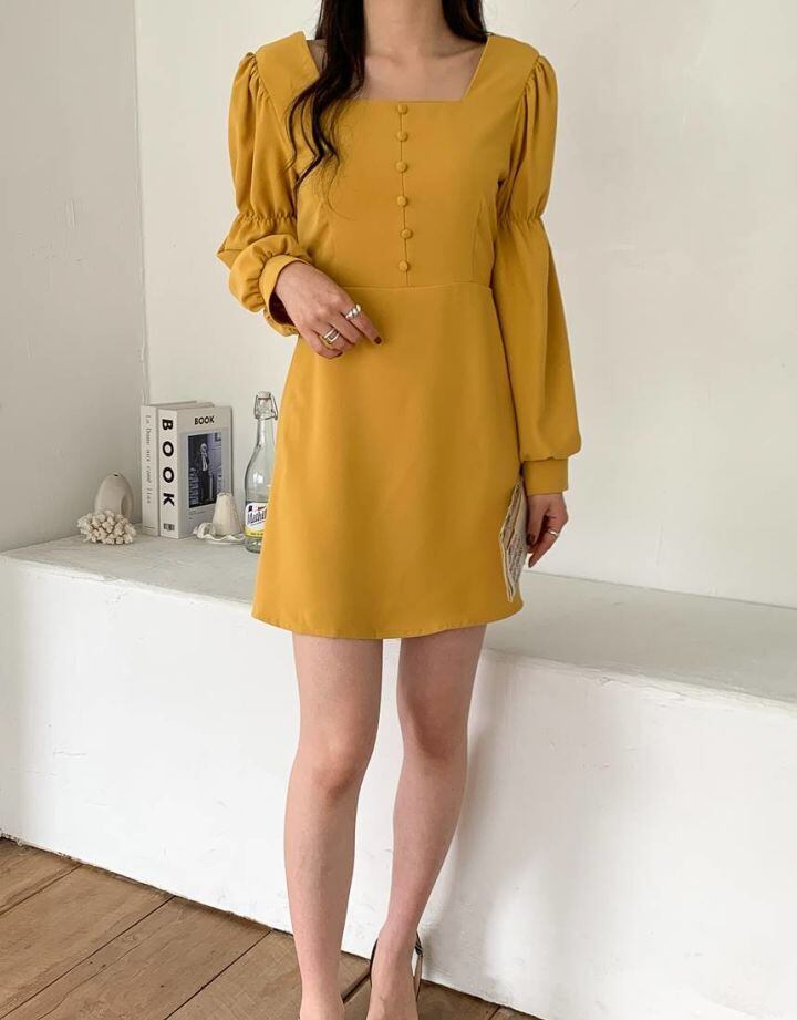 スプリングオータムドレス スタンダードカラールーズスリムレディース レトロ 春物 秋物 スクウェア 5/17 mi4632627619384